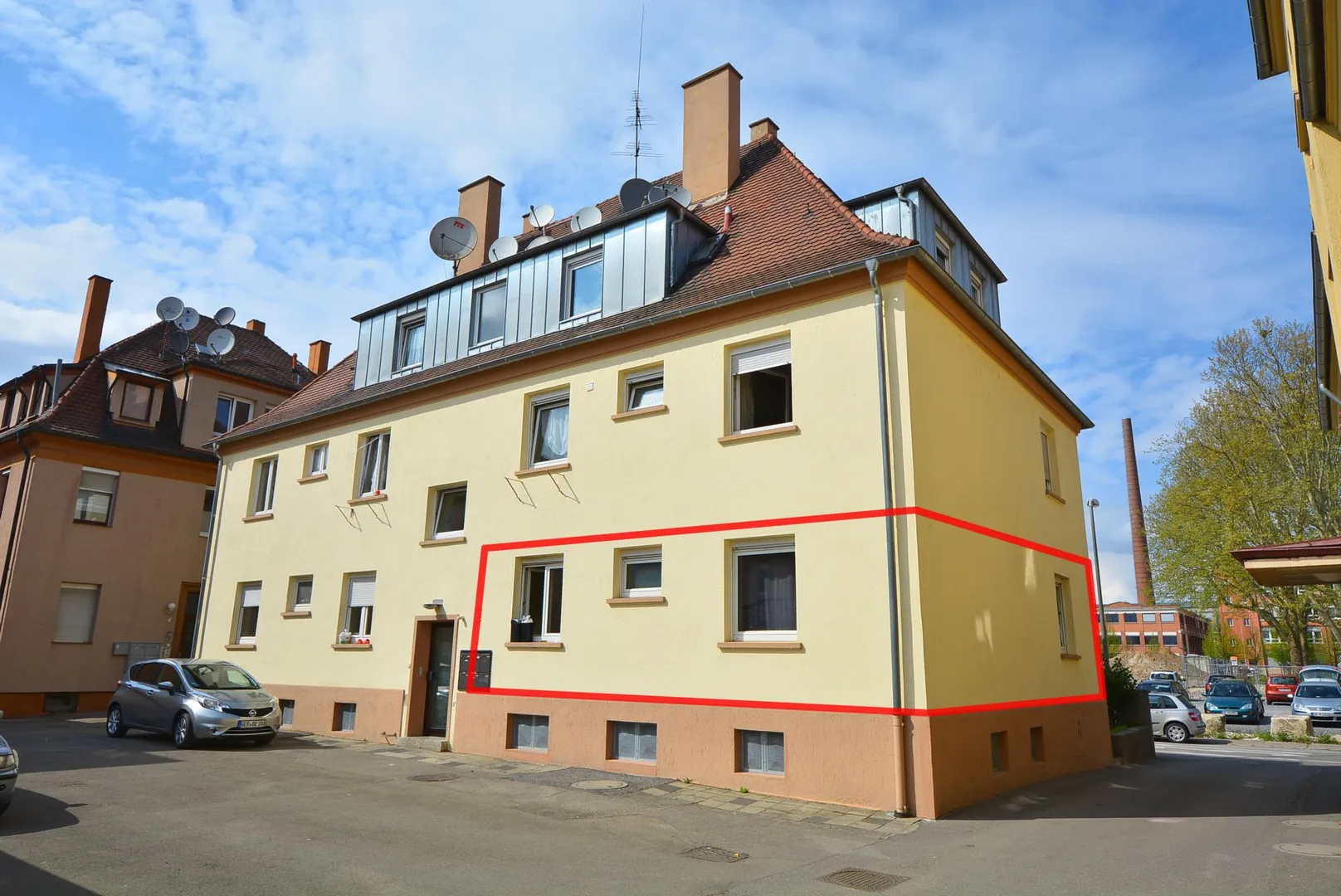 Diese modernisierte und renovierungsbedürftige 3-Zimmer-Wohnung befindet sich im Hochparterre (Erdgeschoss) eines denkmalgeschützten 6-Familienhauses.