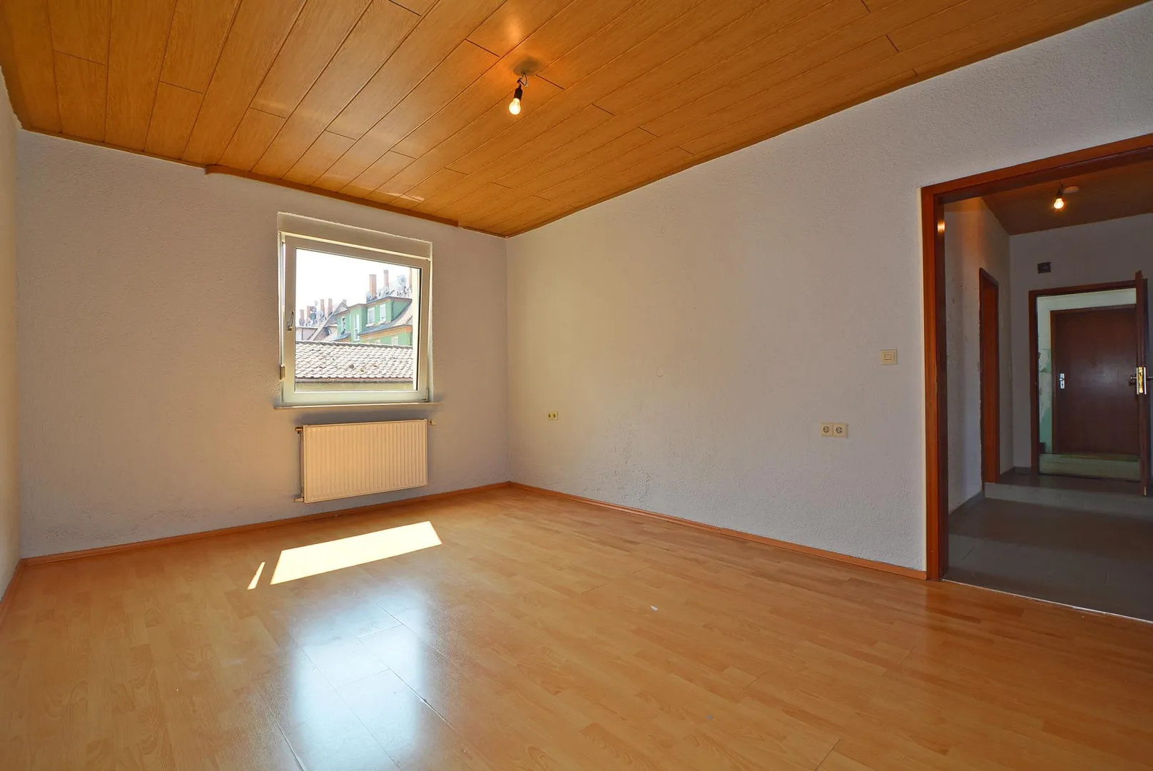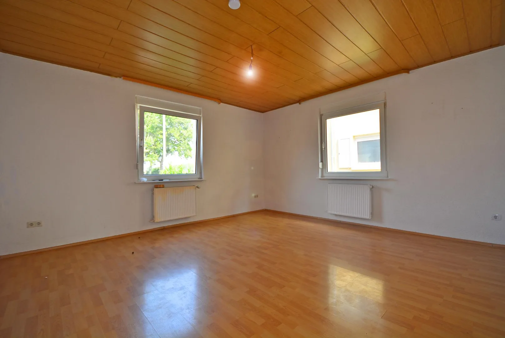 Die Decken sind mit Holzpaneelen verkleidet. Die Raumhöhen betragen ca. 2,57 Meter.