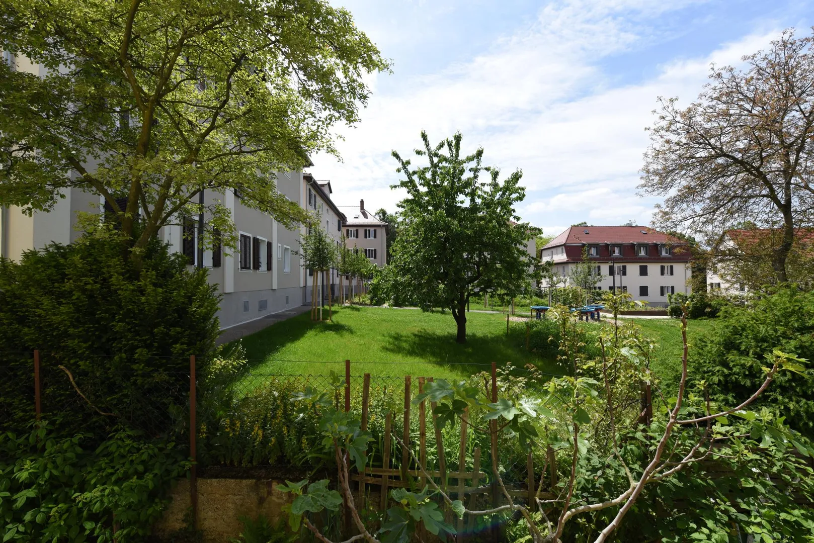 Zur Wohnung gehören ein Abstellraum im Gewölbekeller, ein Sondernutzungsrecht am Kfz-Stellplatz im Innenhof sowie ein Sondernutzungsrecht am Ost-Garten vor der Wohnung.