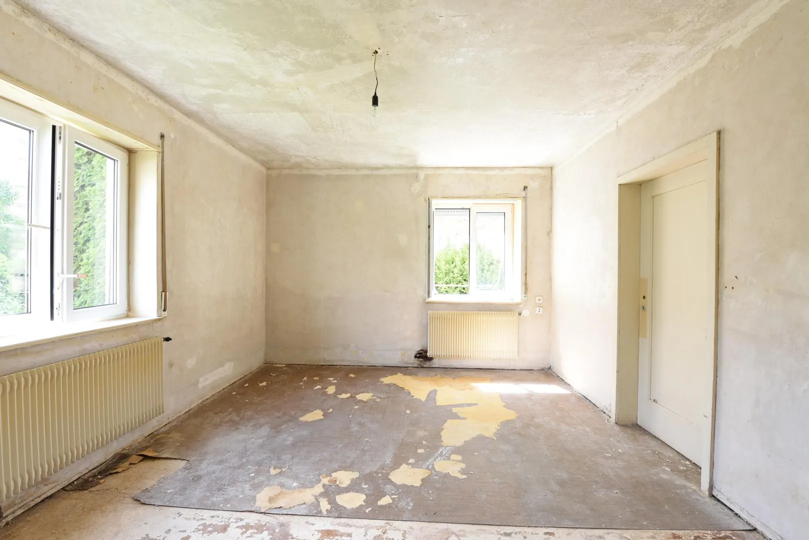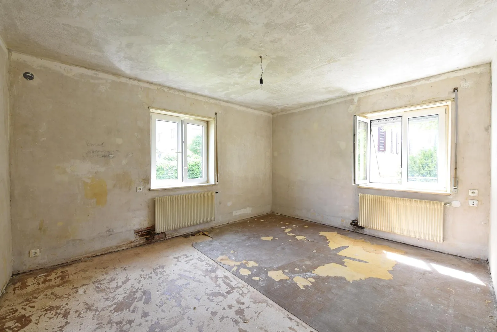 Diese sanierungsbedürftige 3-Zimmer-Wohnung mit Garten befindet sich im Hochparterre (Erdgeschoss).