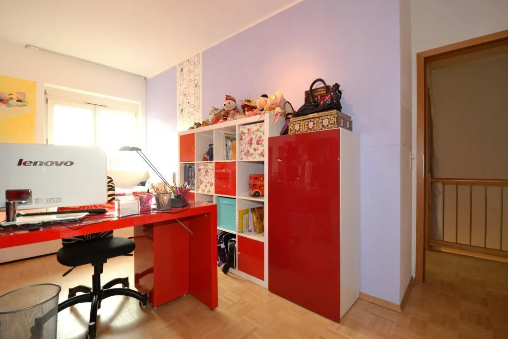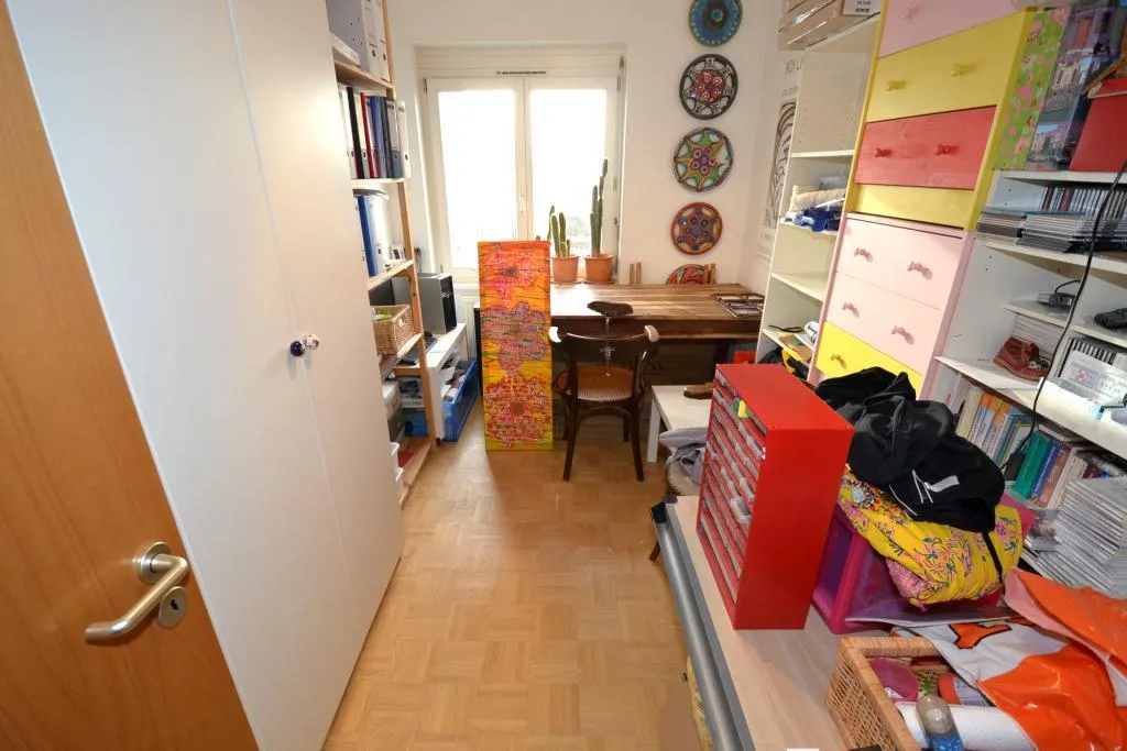 Der Flur und die Zimmer sind mit Parkett und Raufasertapeten ausgestattet. Das Schlafzimmer verfügt über einen französischen Balkon. Beide Kinderzimmer sind nach Süd-West ausgerichtet.