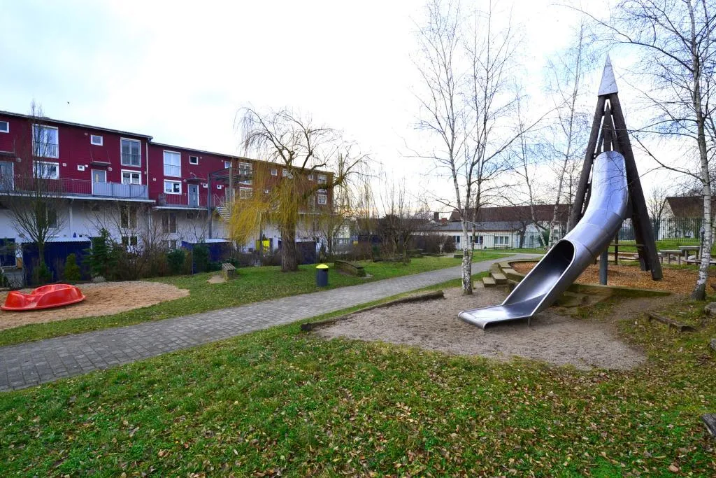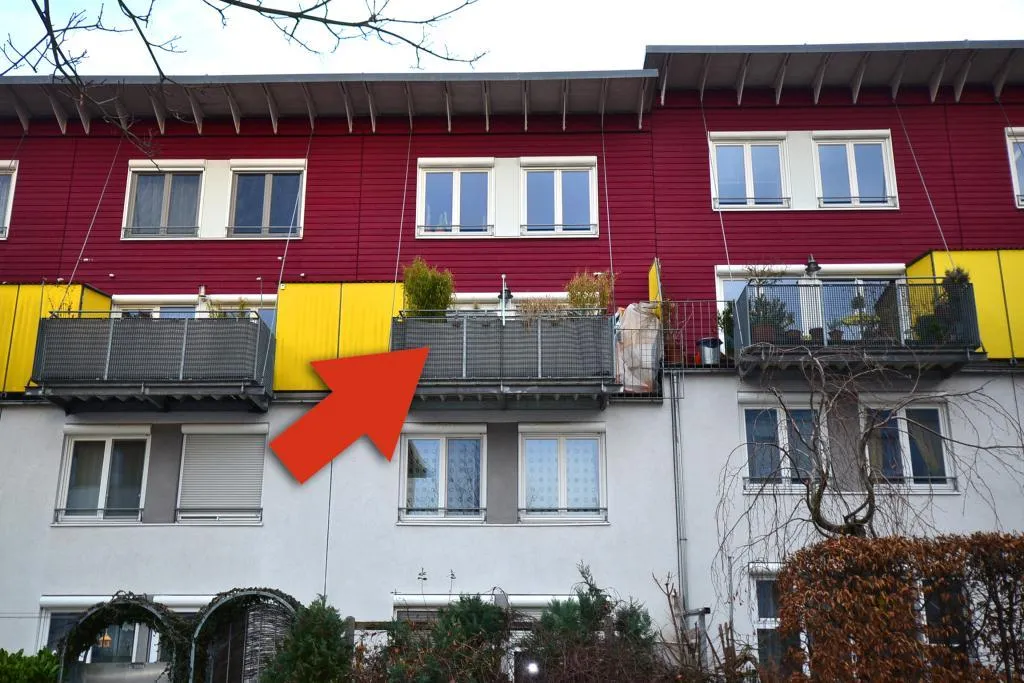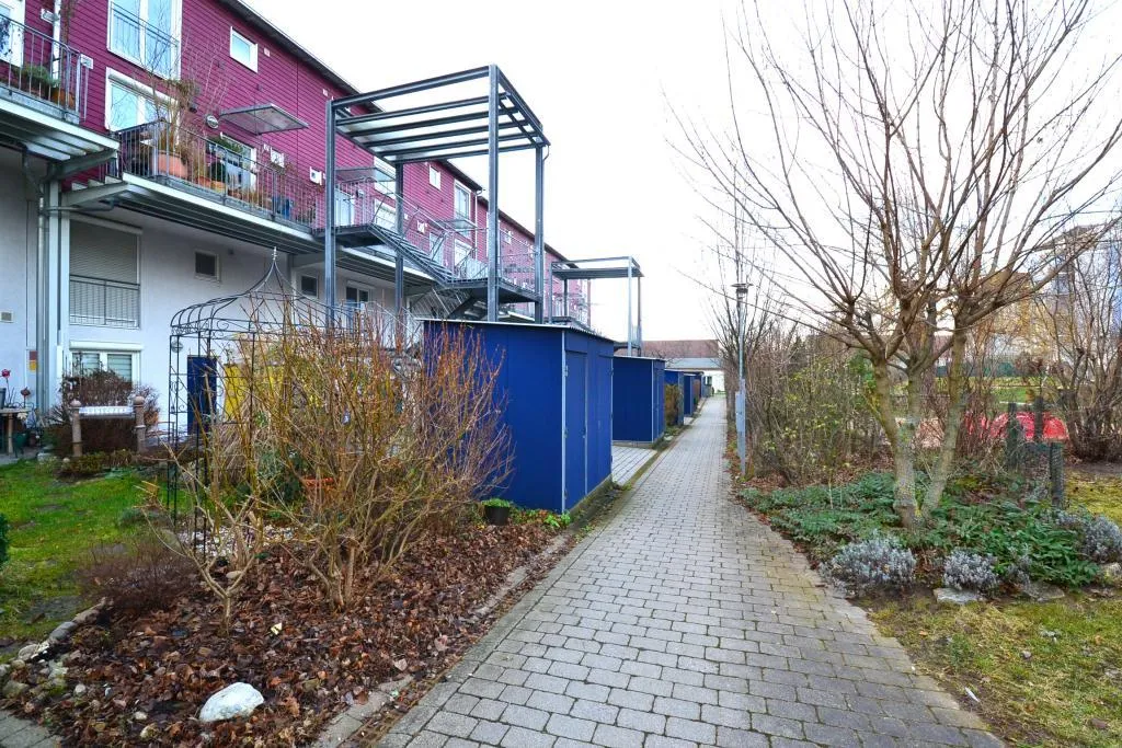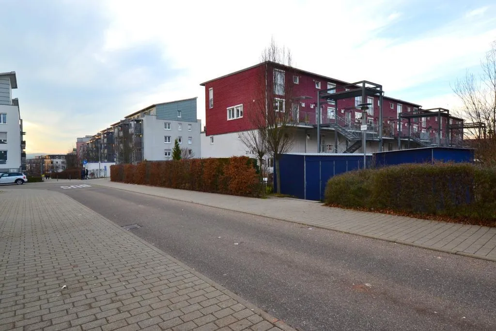 Die Wohnanlage mit drei Reihenhäusern und 20 Eigentumswohnungen wurde ca. 1998, in ökologischer Bauweise, 4-geschossig, komplett unterkellert und mit Pultdach erstellt.