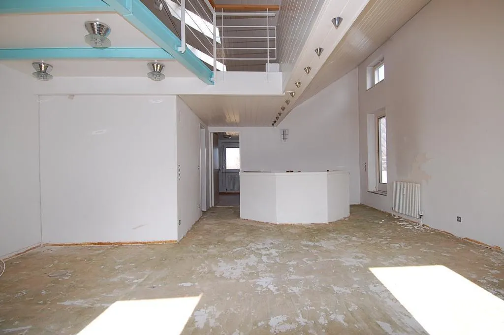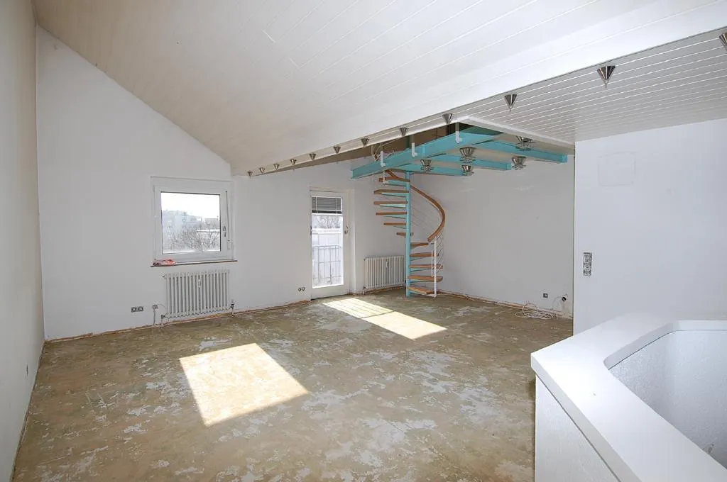 Diese individuelle DG-Maisonette-Wohnung mit 4 Zimmern und einer Galerie befindet sich im Obergeschoss und Dachgeschoss eines 6-Familien-Reihenmittelhauses.