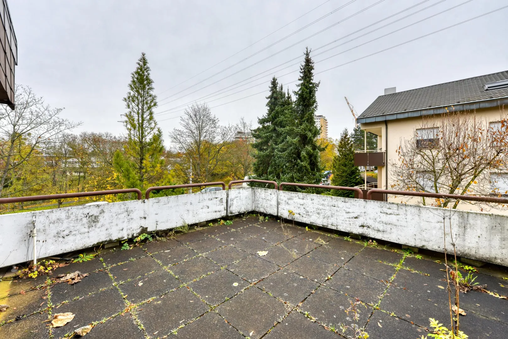 Auf der West-Seite befinden sich eine teilweise überdachte, ca. 27 m² große Terrasse, welche über das "Kinder"-Zimmer begehbar ist sowie der überdachte, ca. 12 m² große Balkon, welcher über den Wohnbereich begehbar ist.