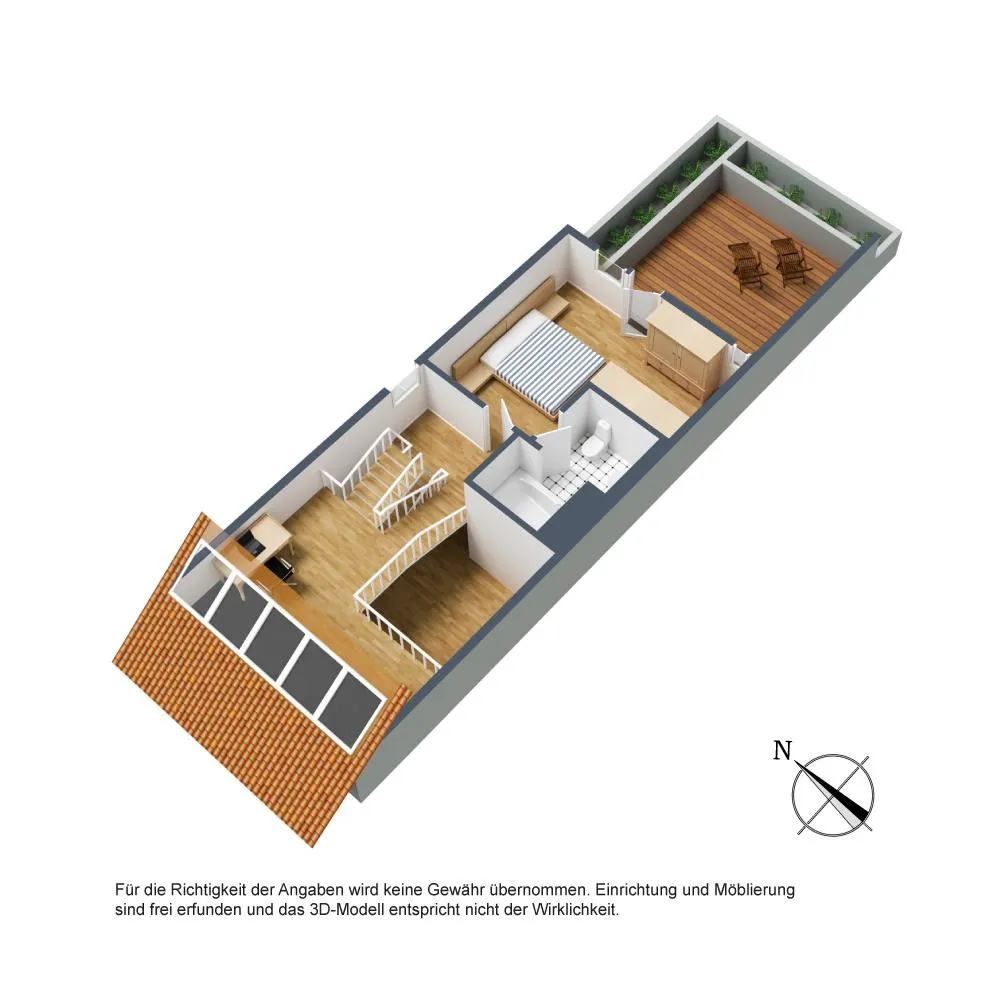 Auf dem Garagen-Dach (Ost-Seite) befindet sich eine ca. 22 m² große Dach-Terrasse, welche über das Schlafzimmer begehbar ist.