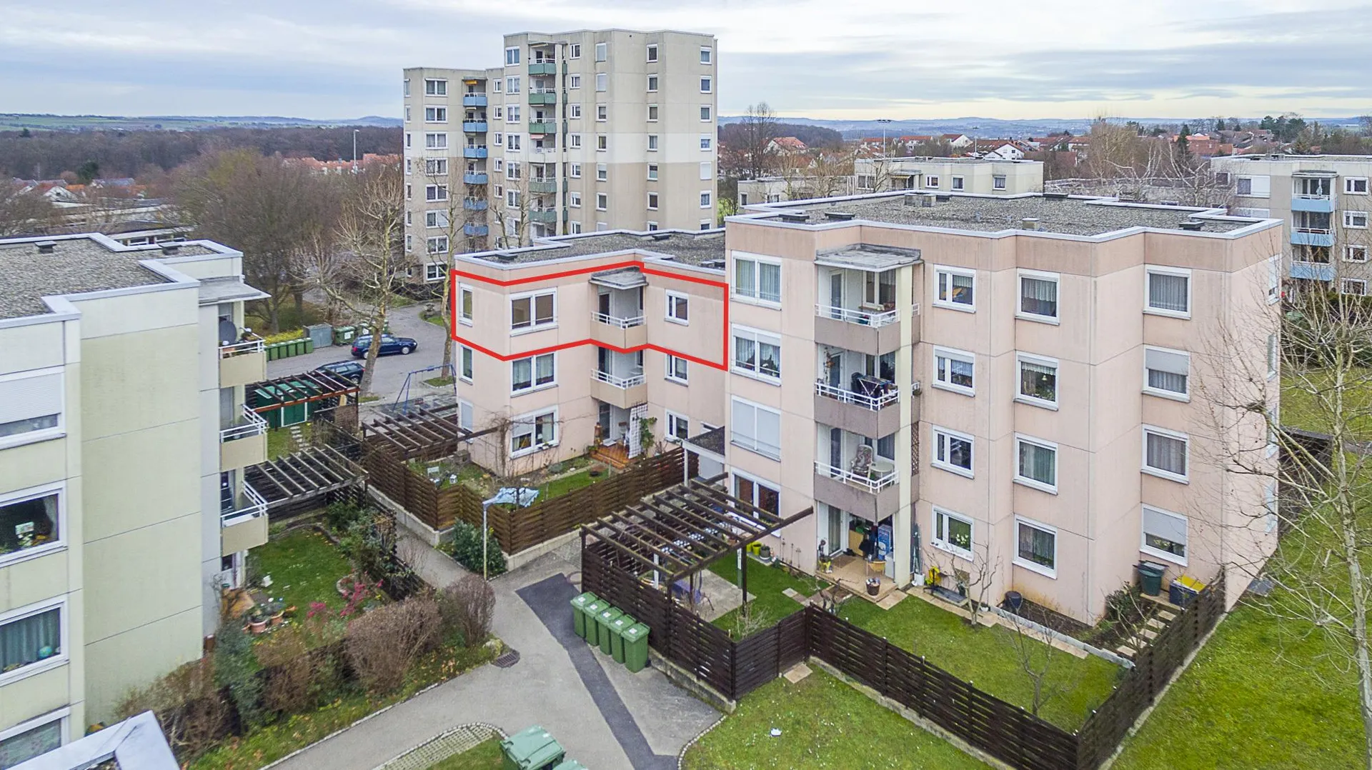 Zur Wohnung gehören zwei Abstellräume im Untergeschoss sowie ein offener Kfz-Stellplatz in der Tiefgarage.