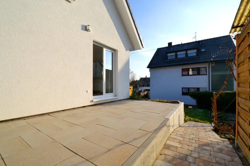 Diese neu- & hochwertige 3-Zimmer-Etagen-Wohnung mit einem separaten Arbeitszimmer befindet sich im Erdgeschoss eines freistehenden 3-Familien-Hauses.