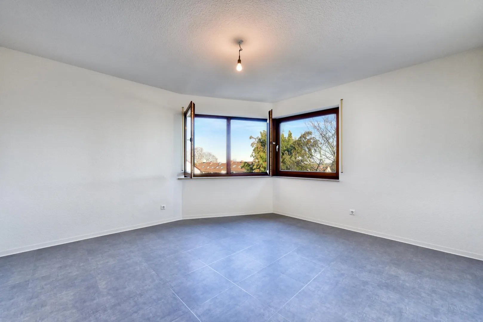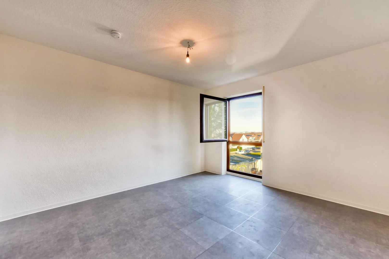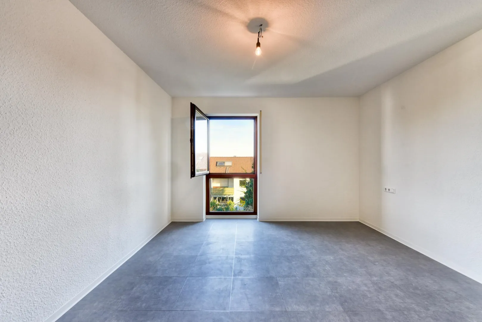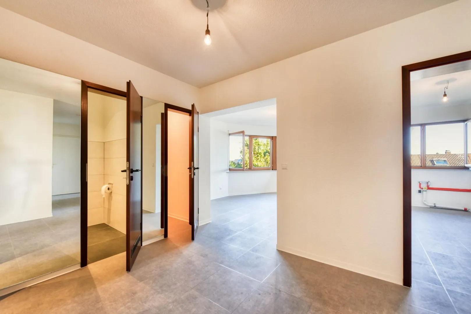 In den Zimmern, in der Diele, in der Küche sowie im Abstellraum wurden neue Design-Vinyl-Böden verlegt. Die Böden im Badezimmer sowie im WC sind gefliest.