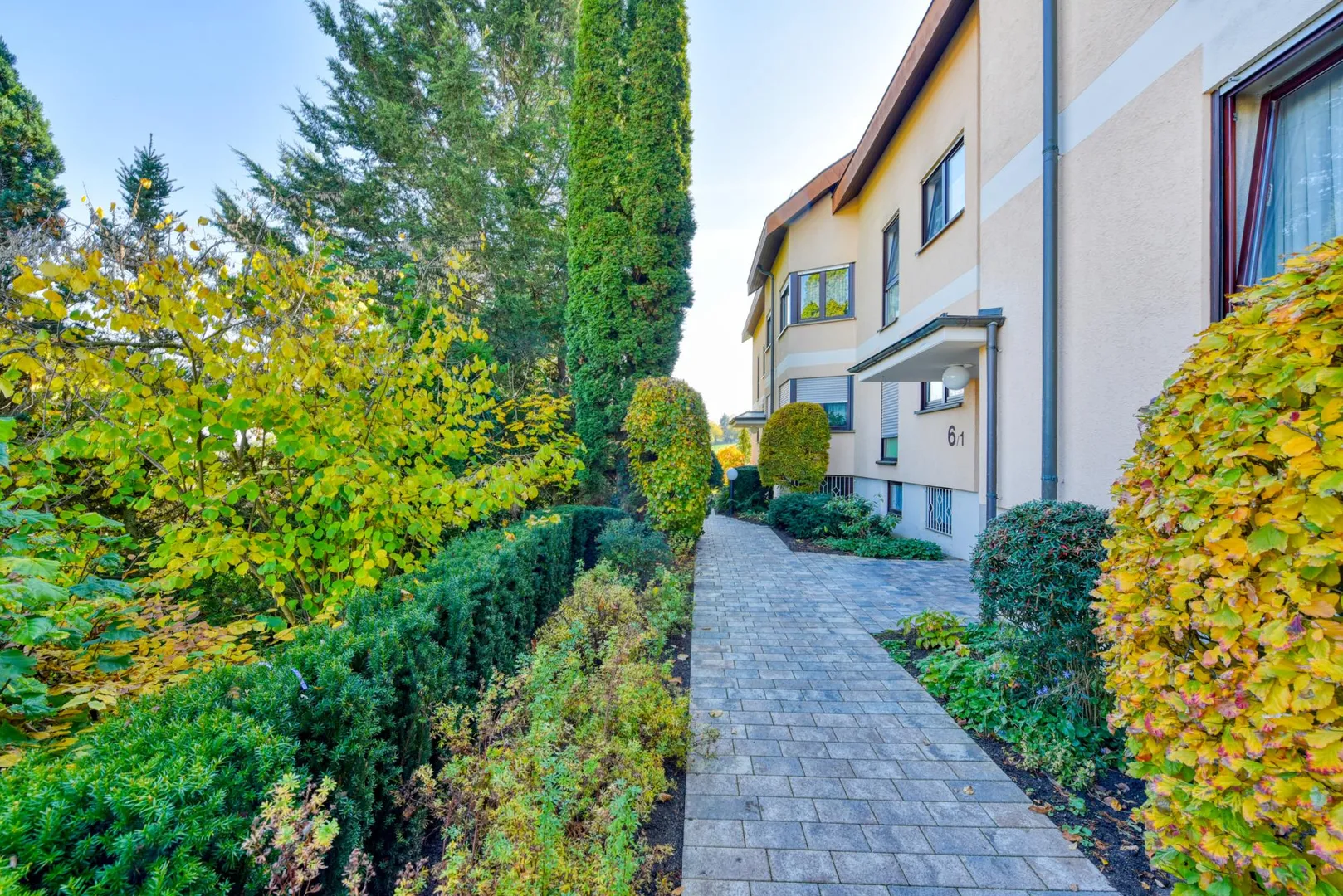 Diese helle, sonnige und hochwertig modernisierte 2 1/2 bis 3-Zimmer-Wohnung befindet sich im 1. Obergeschoss eines 9-Familien-Reihenmittelhauses.