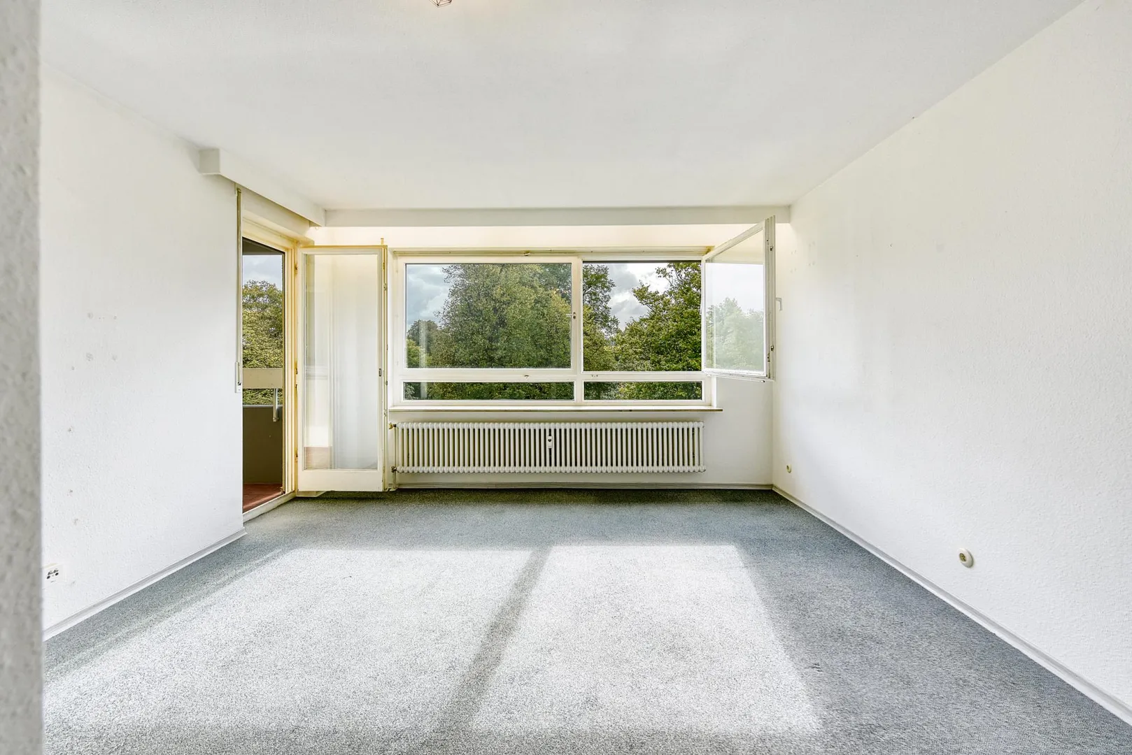 Diese helle, sonnige und modernisierungsbedürftige 1-Zimmer-Wohnung befindet sich im 3. Obergeschoss eines Reihenmittelhauses mit 23 Wohneinheiten.