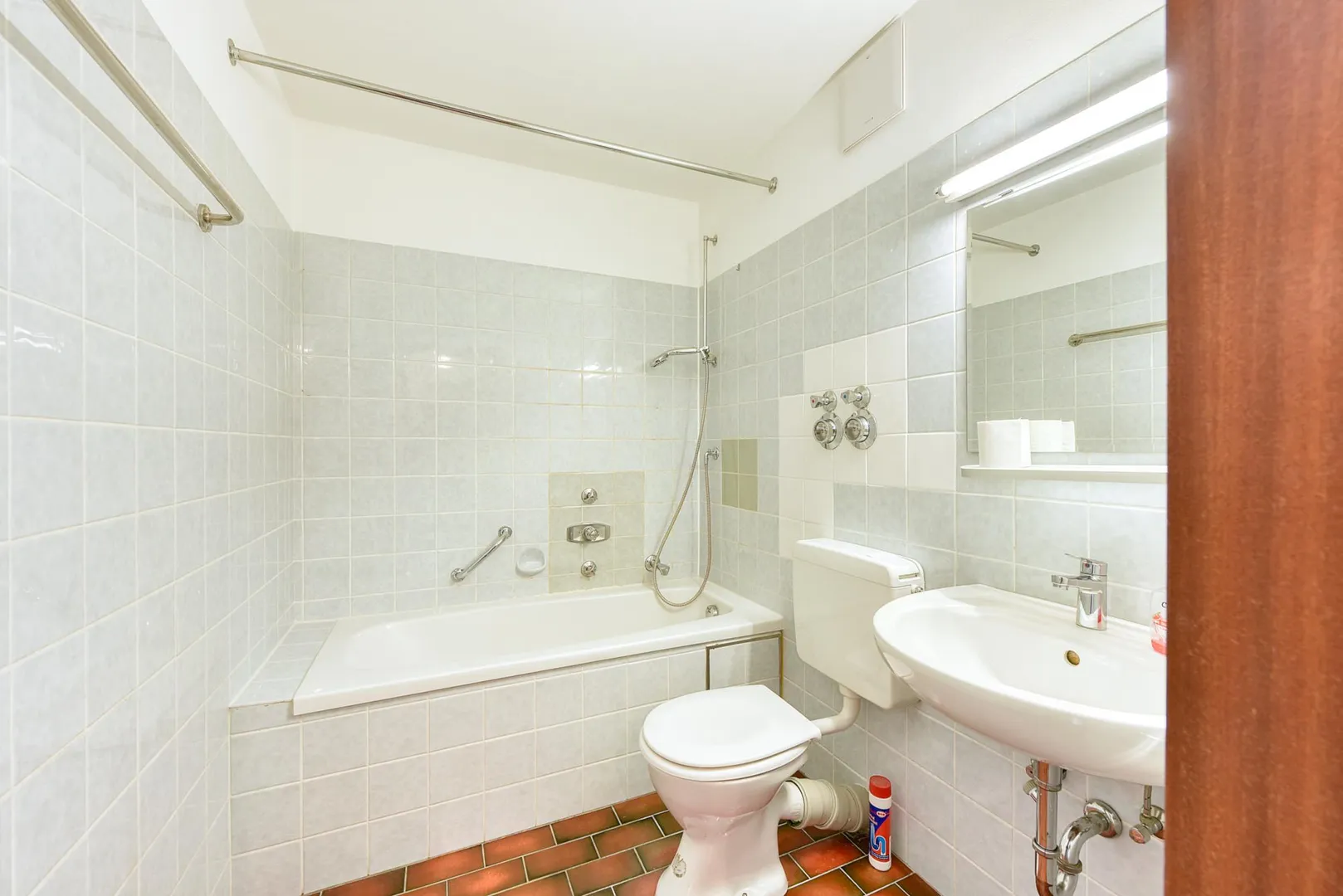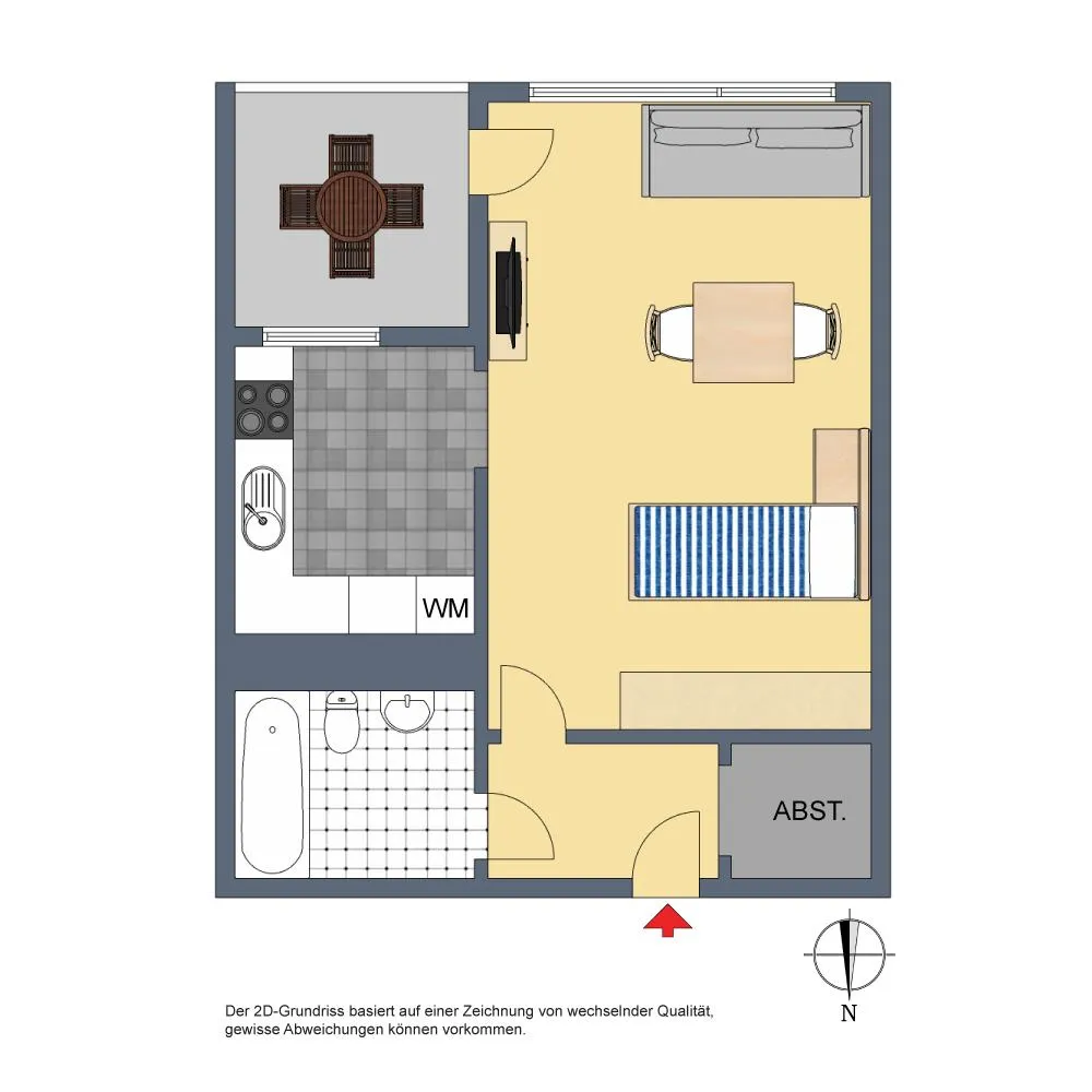 Der 5,6 m² große und überdachte Süd-Balkon ist über das Wohnzimmer begehbar. Das Badezimmer ist innenliegend. In der Wohnung befindet sich ein Abstellraum.