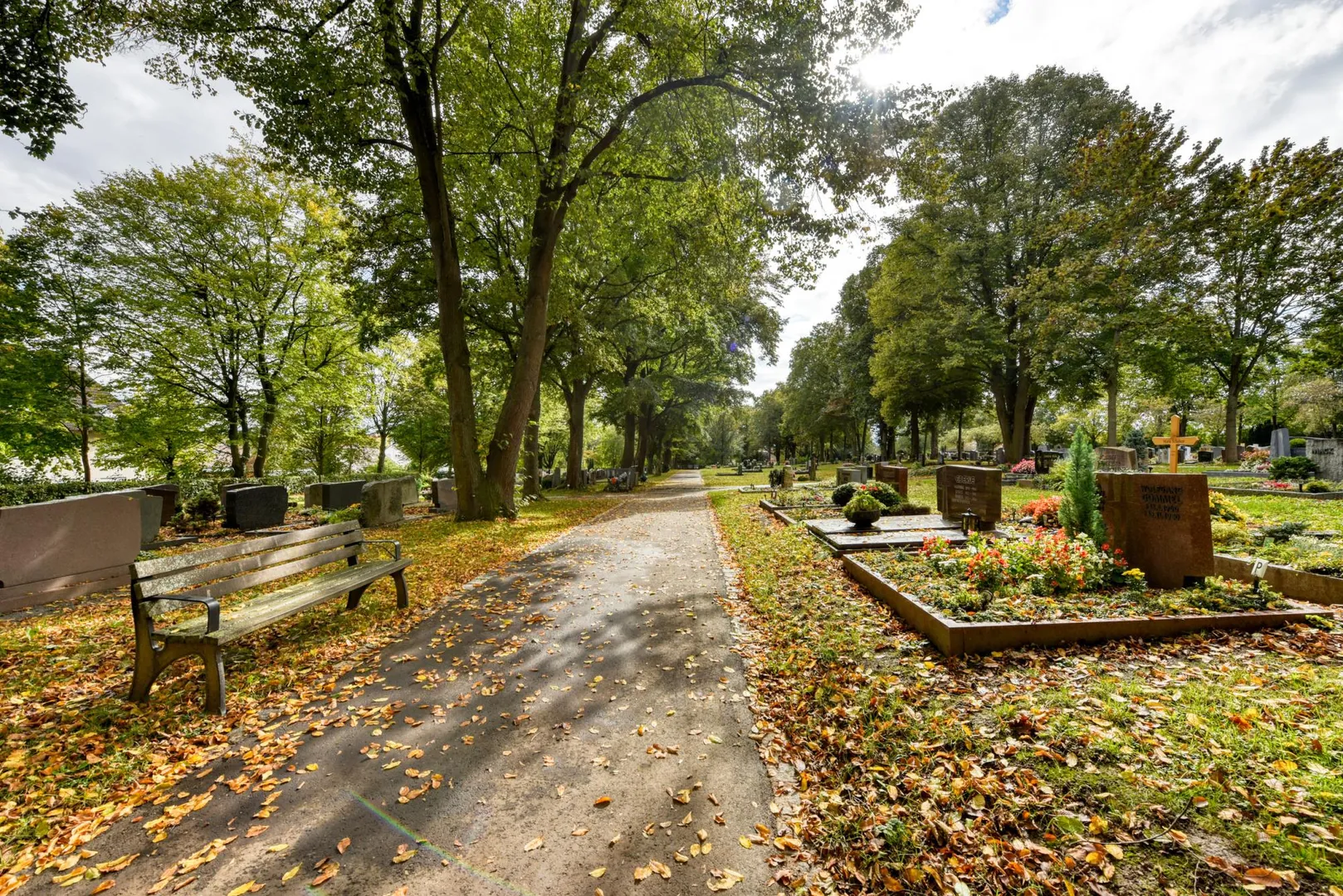 Der Friedhof befindet sich auf der Süd-Hausseite.