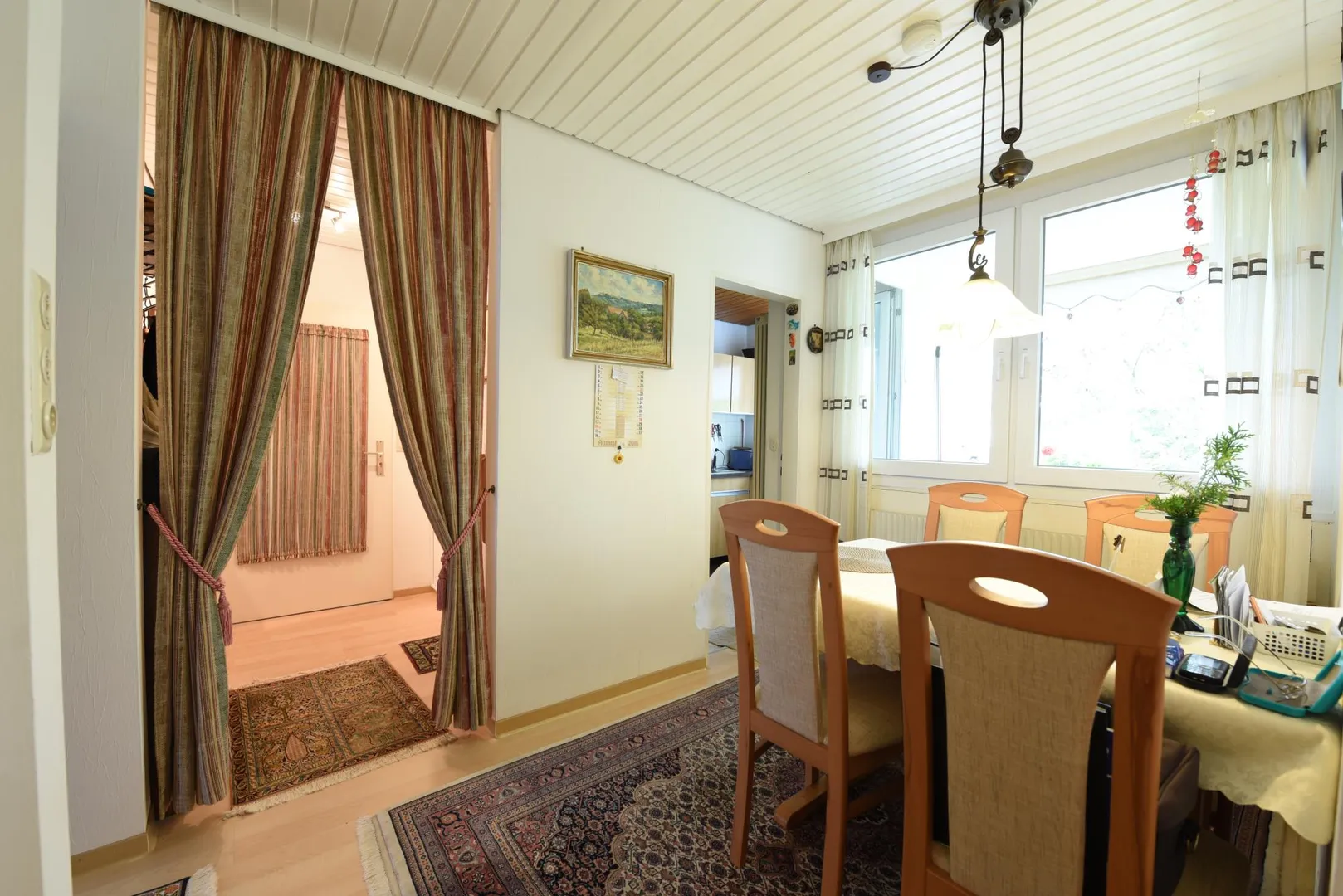 Im Schlafzimmer, in der Ess-Diele sowie im Flur ist Laminat verlegt.