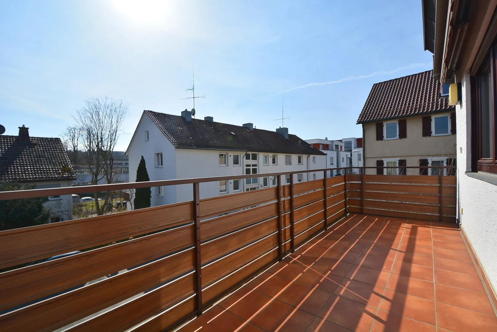 Der ca. 8,5 m² große Süd-Balkon verfügt über eine Markise, eine separate Belichtung sowie einen Stromanschluss.
