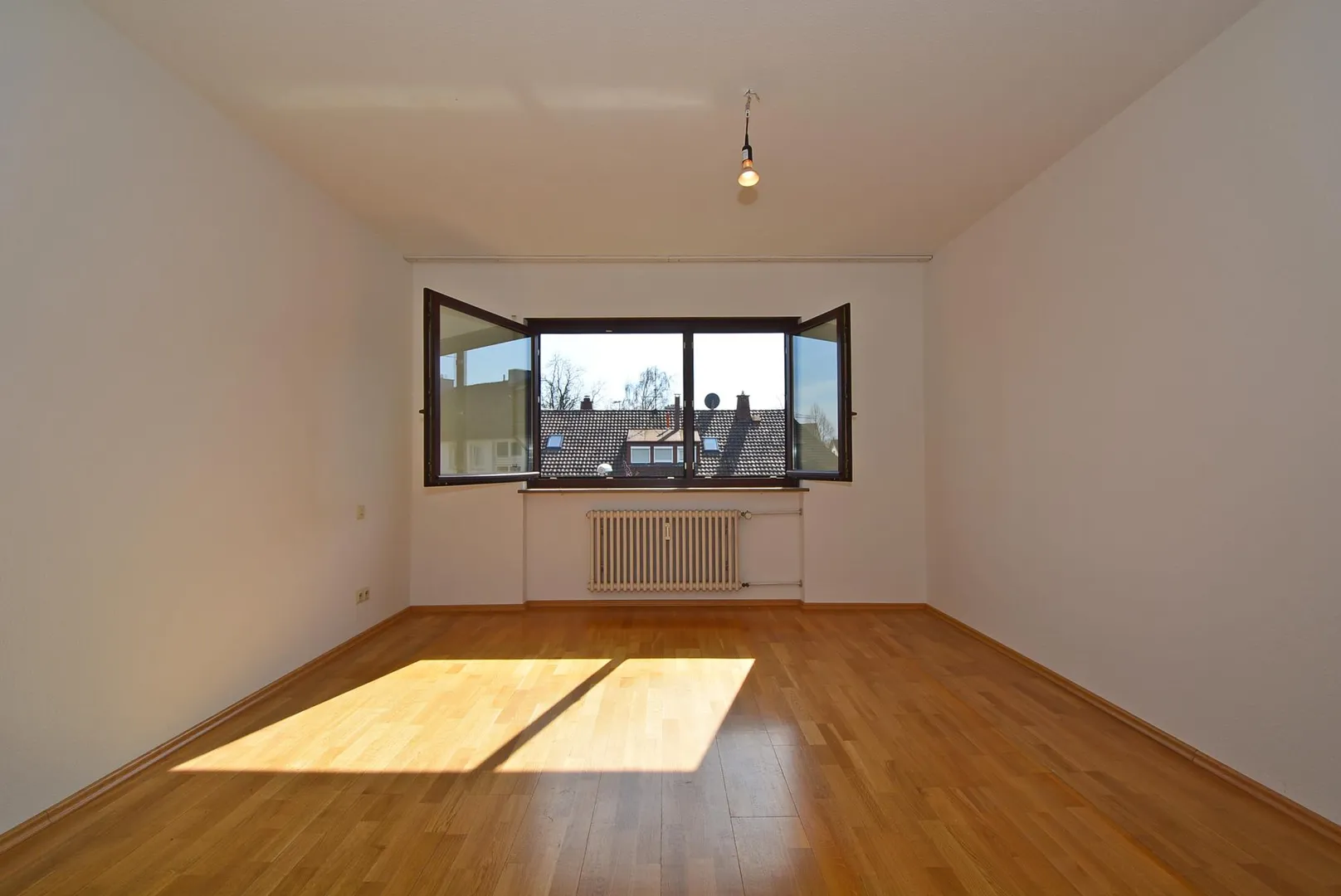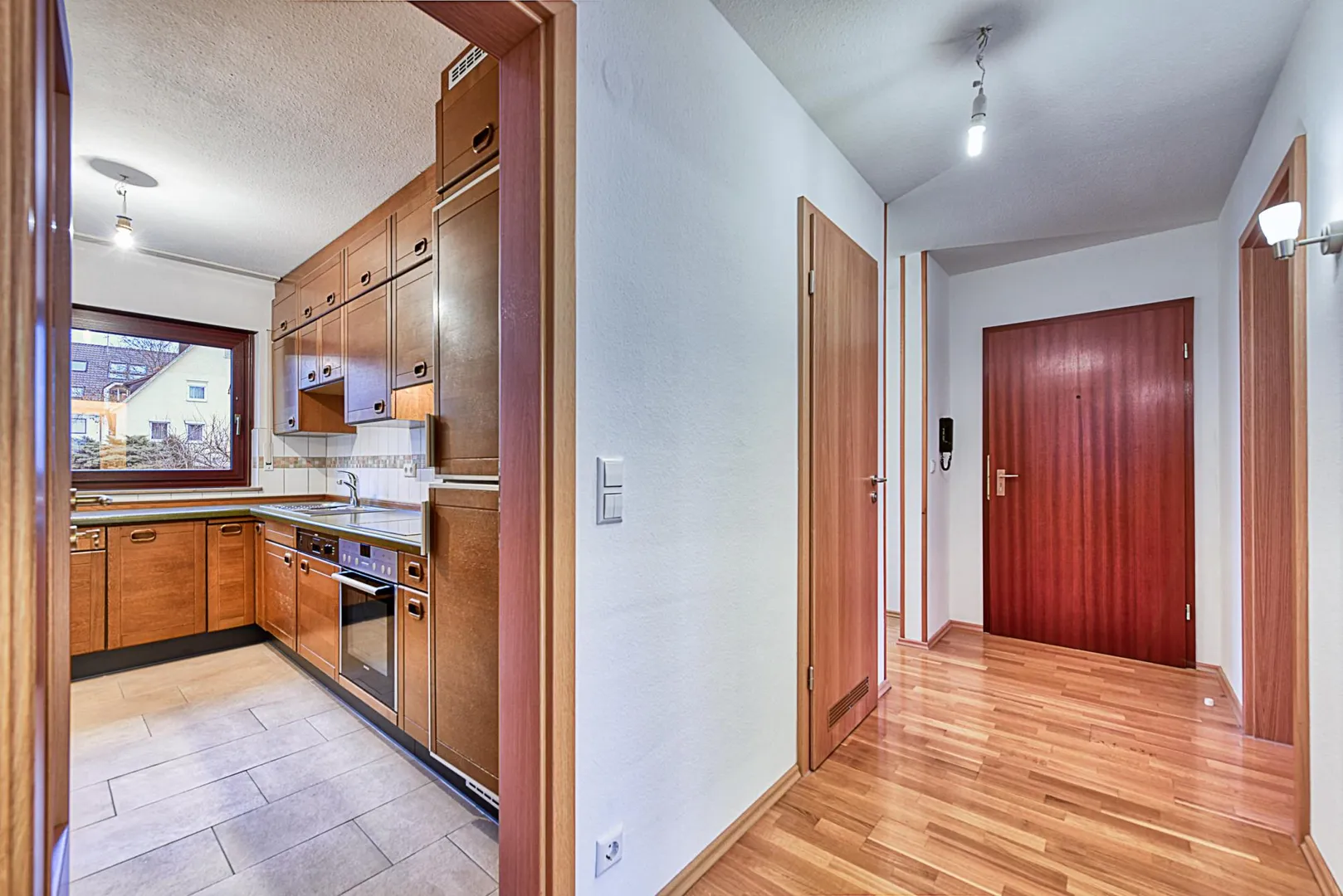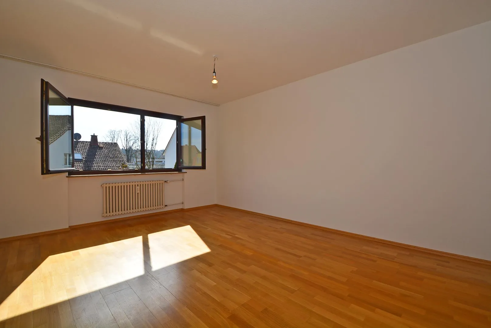 Im Flur sowie in den Zimmern sind Parkett-Böden verlegt. Die Böden im Badezimmer, in der Küche sowie im WC sind gefliest.