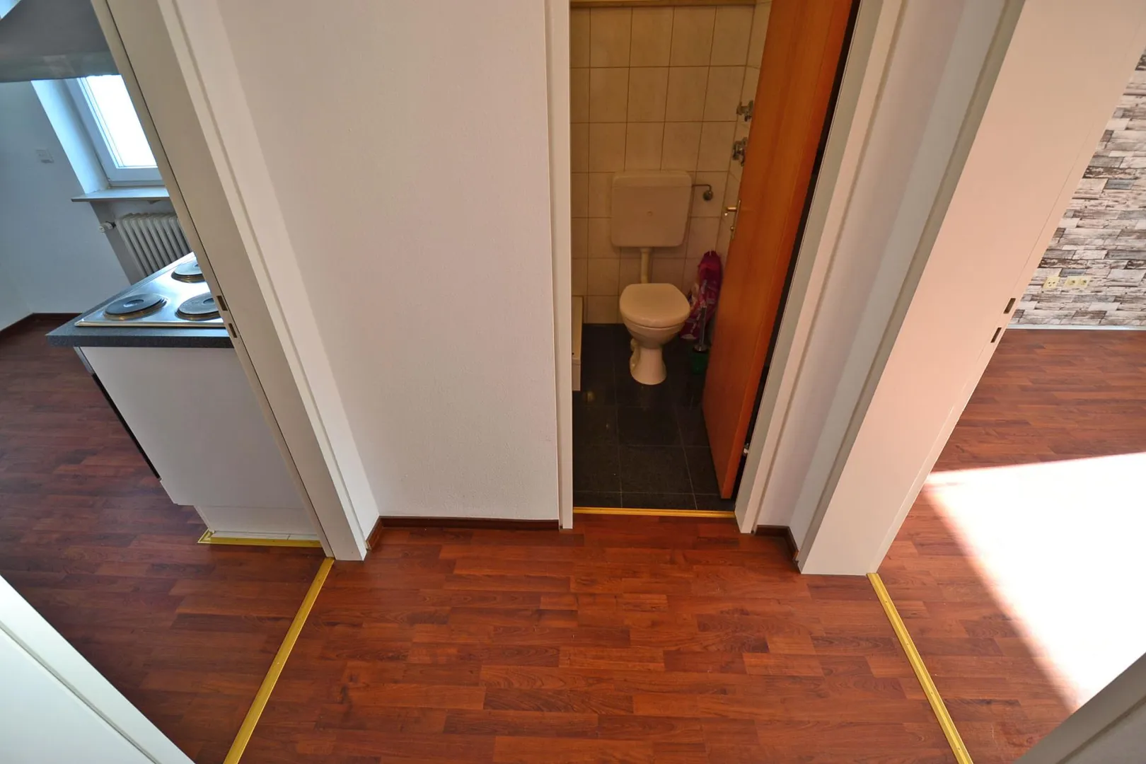 Diese gemütliche, gepflegte und sonnige 1-Zimmer-Wohnung befindet sich im 1. Obergeschoss.