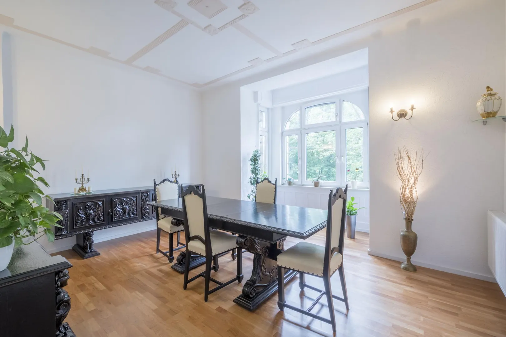 Zahlreiche ursprüngliche Elemente wie Türrahmen, Türen und Stuckdecken sind erhalten geblieben und hochwertig aufgearbeitet worden.
