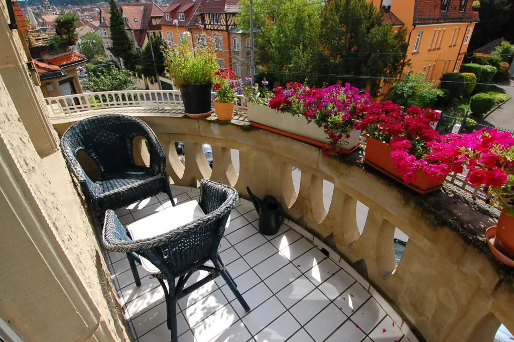 Der Balkon ist nach Ost-Süd ausgerichtet und ist vom Wohn- und Schlafzimmer begehbar. Am Wohnbereich verfügt der Balkon über eine Markise.