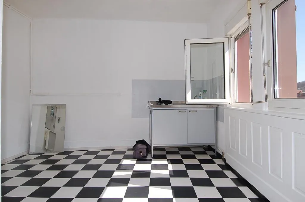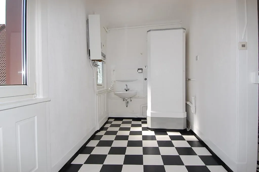 Diese helle 1 1/2-Zimmer-Etagen-Wohnung befindet sich im 3.Obergeschoss eines freistehenden Wohn- und Geschäftshauses.