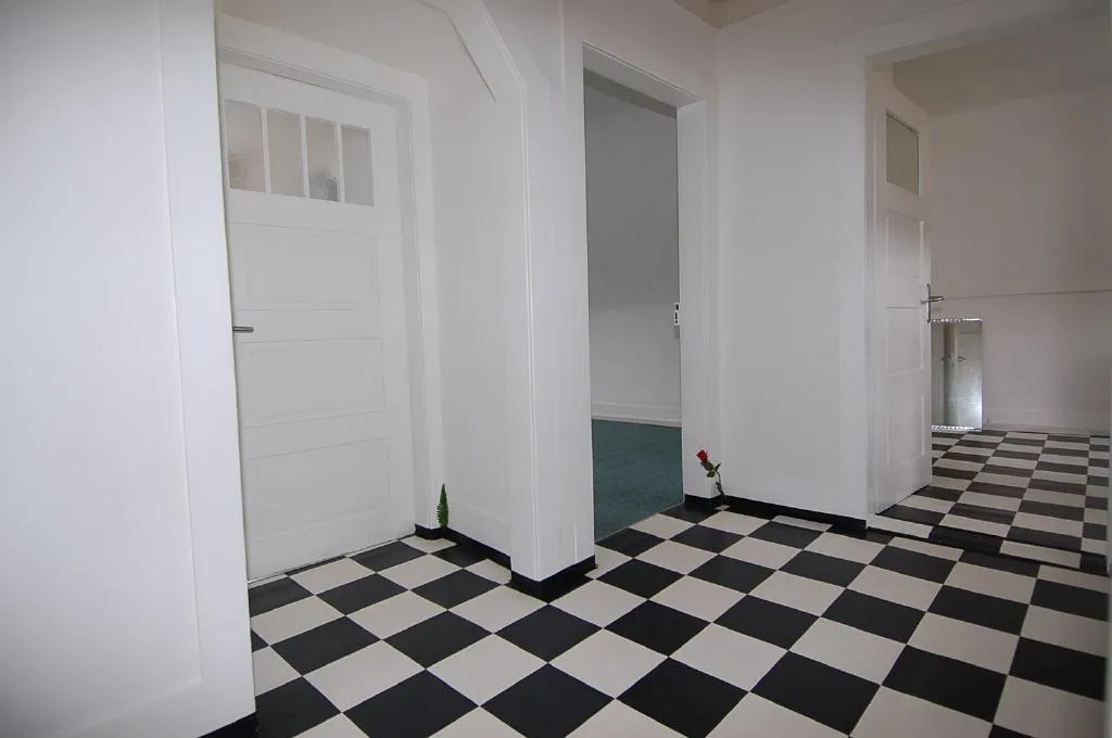 Im Schlafzimmer ist ein Teppichboden verlegt. Im Flur, in der Küche und im Wohnzimmer befindet sich ein PVC-Bodenbelag.