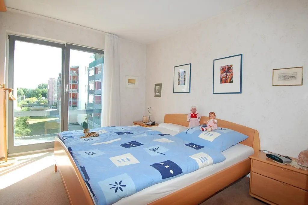Die Wohnung ist eine Eckwohnung und hat viele bodentiefe Fensterelemente mit französischen Balkonen. Dadurch ist sie sehr hell und sonnig. 2 Zimmer sind auf der Nord-Ost Seite, das Bad und die Küche sind auf der Ost-Süd Seite, der Wintergarten ist auf der Süd-Seite und das Wohnzimmer ist auf der Süd-West Seite.