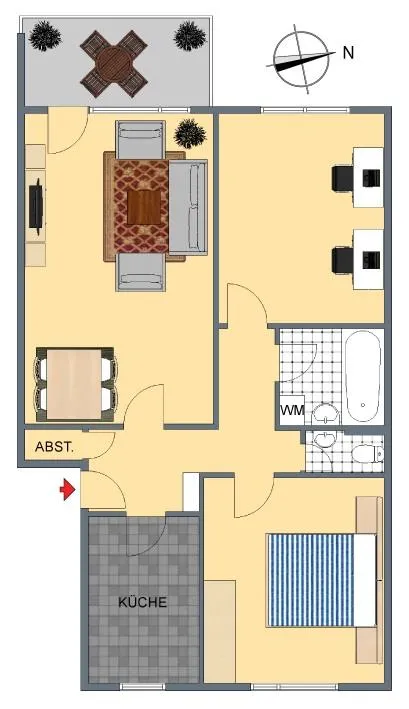 Die Aufteilung der Wohnung ist gut: Alle Räume sind vom Flur aus begehbar. Das WC ist separat. In der Wohnung befindet sich ein Abstellraum.