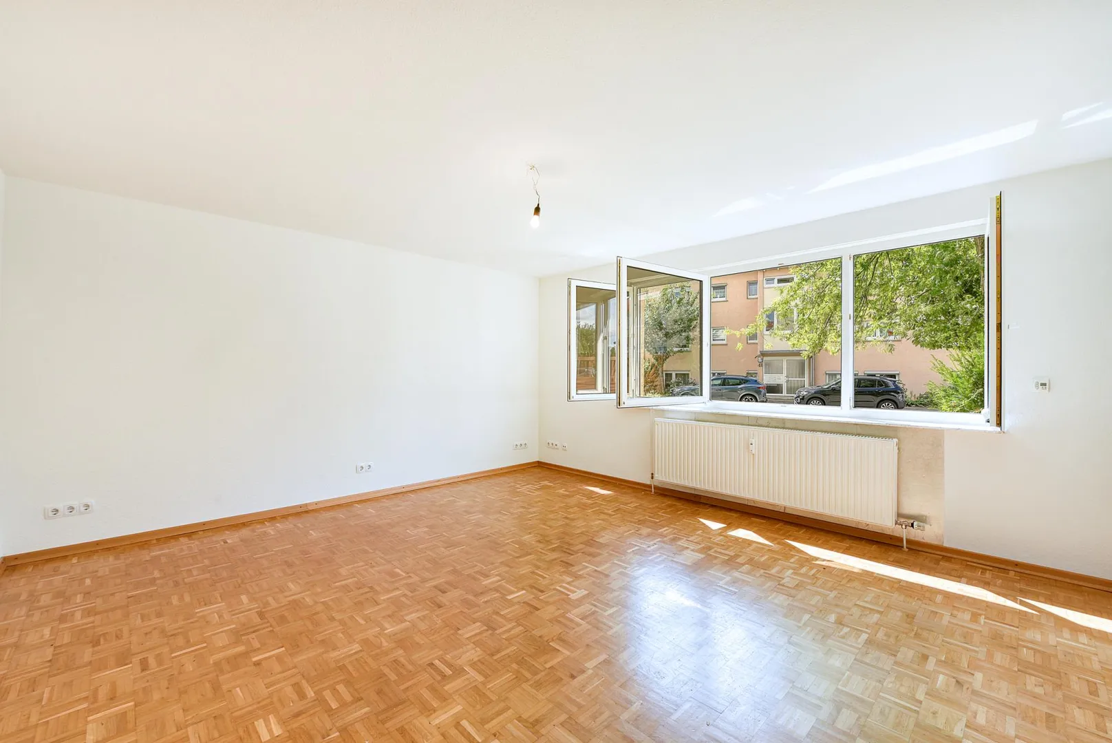 Diese hochwertig modernisierte und frisch renovierte 3-Zimmer-Erdgeschoss-Wohnung mit Terrasse und Garten befindet sich im Hochparterre eines 8-Familien-Reiheneckhauses.