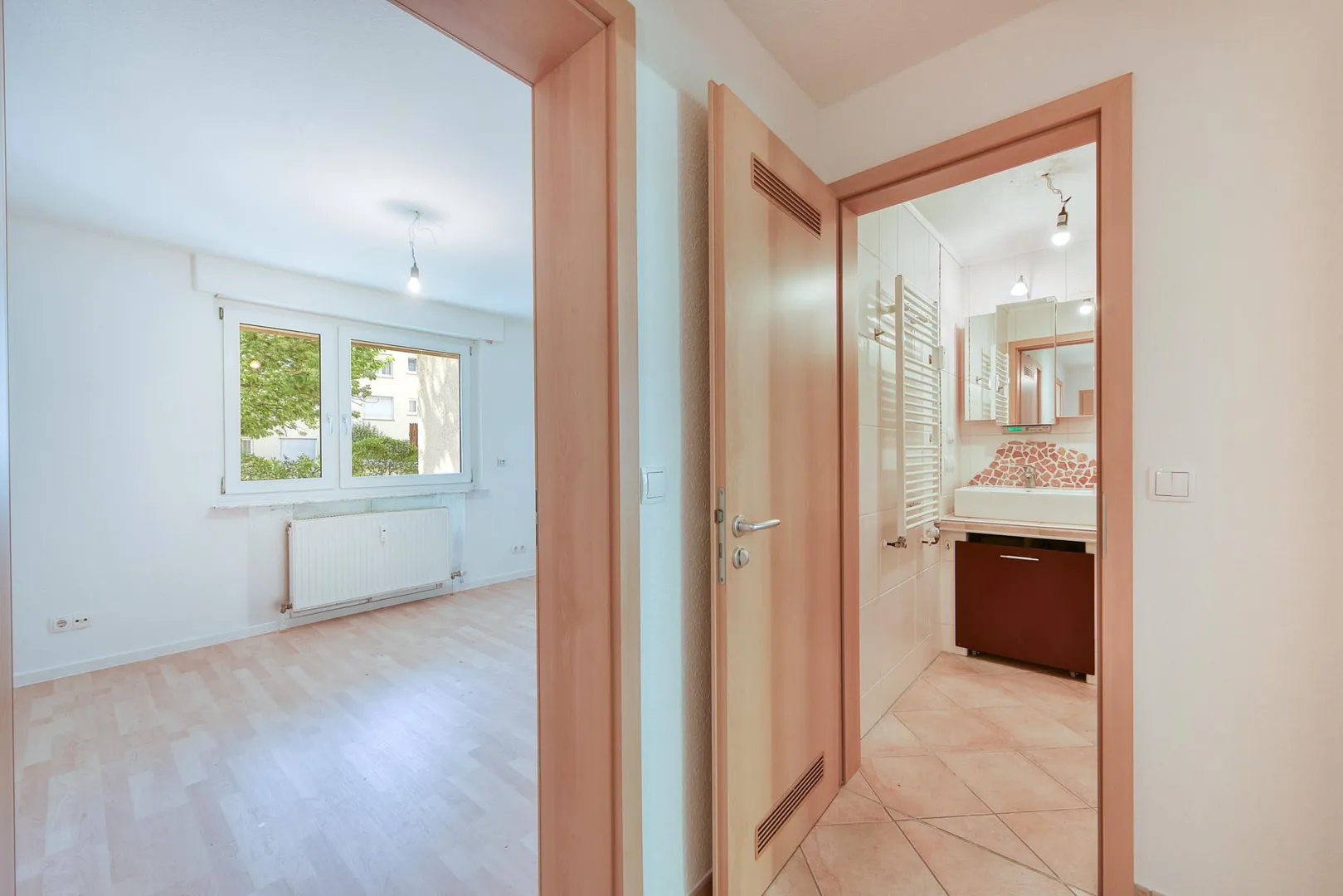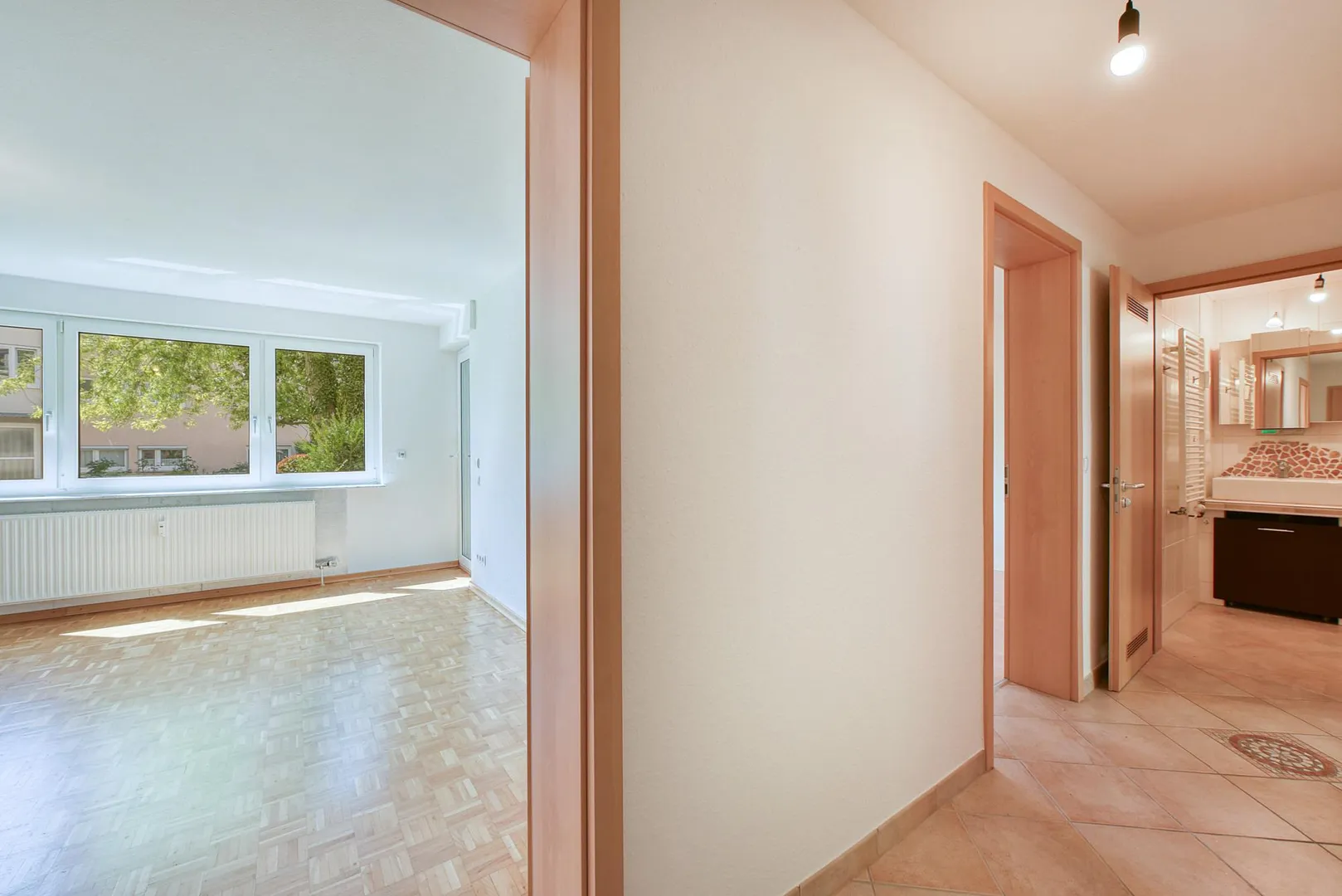 Diese hochwertig modernisierte und frisch renovierte 3-Zimmer-Erdgeschoss-Wohnung mit Terrasse und Garten befindet sich im Hochparterre.