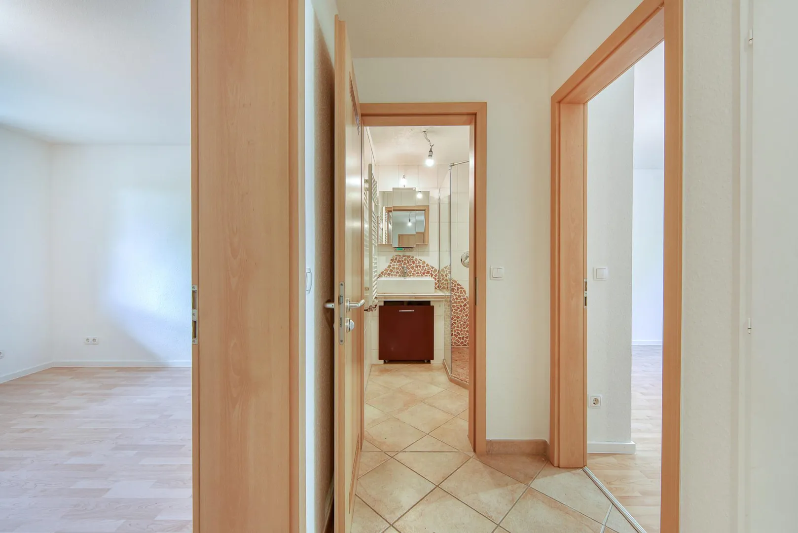 Die hochwertige Modernisierung erfolgte 2006. Aktuell wurden die Wände frisch mit Raufasertapete tapeziert und weiß gestrichen; ebenso wurde im Schlafzimmer ein neuer Laminatboden verlegt.
