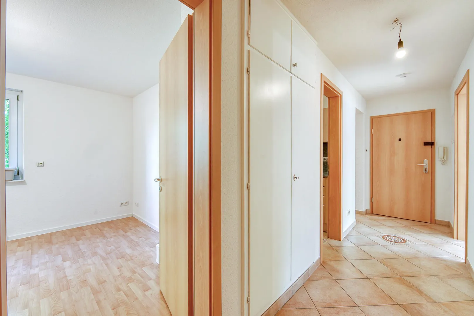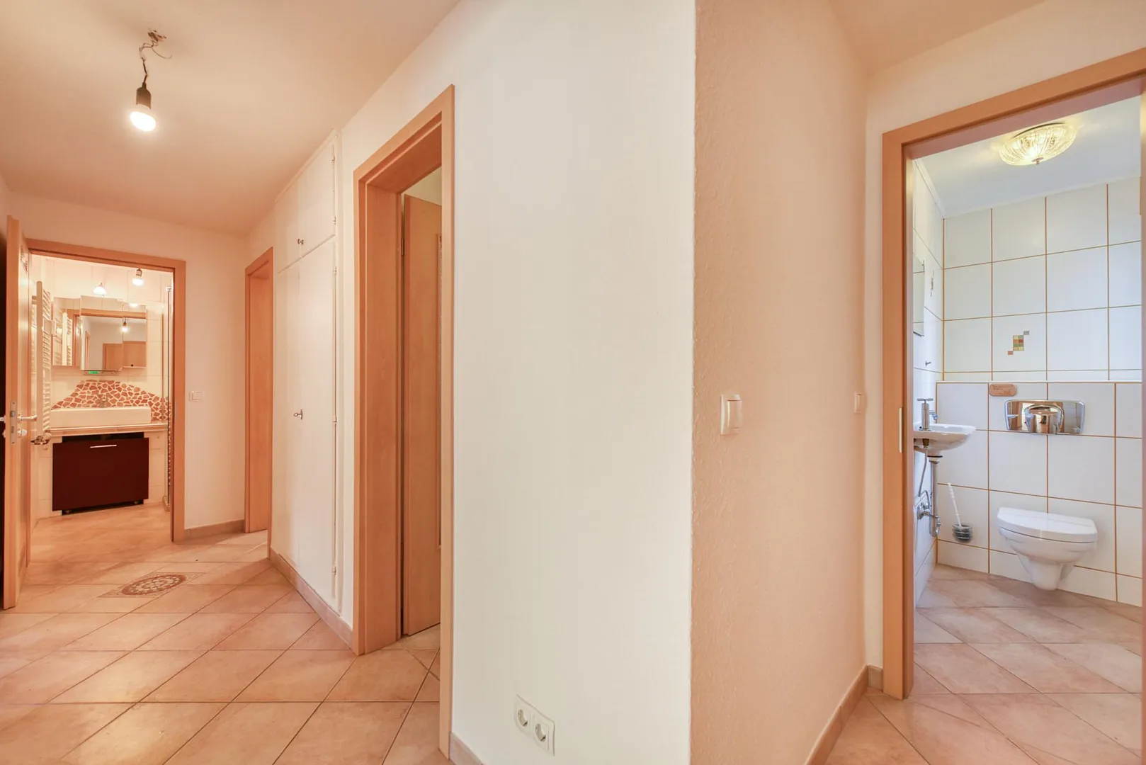 Die Böden im Flur, im Badezimmer, in der Küche sowie im WC sind gefliest.