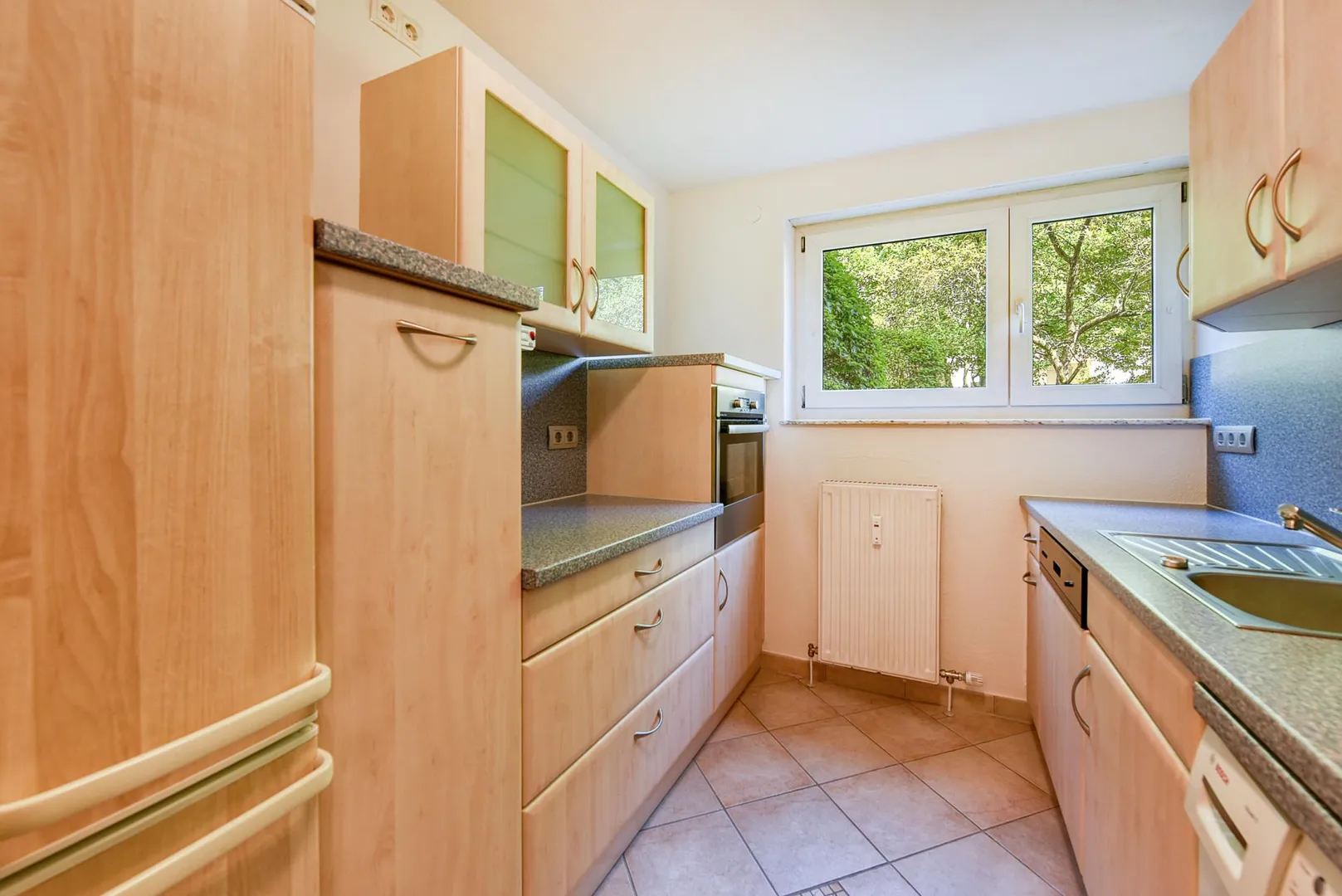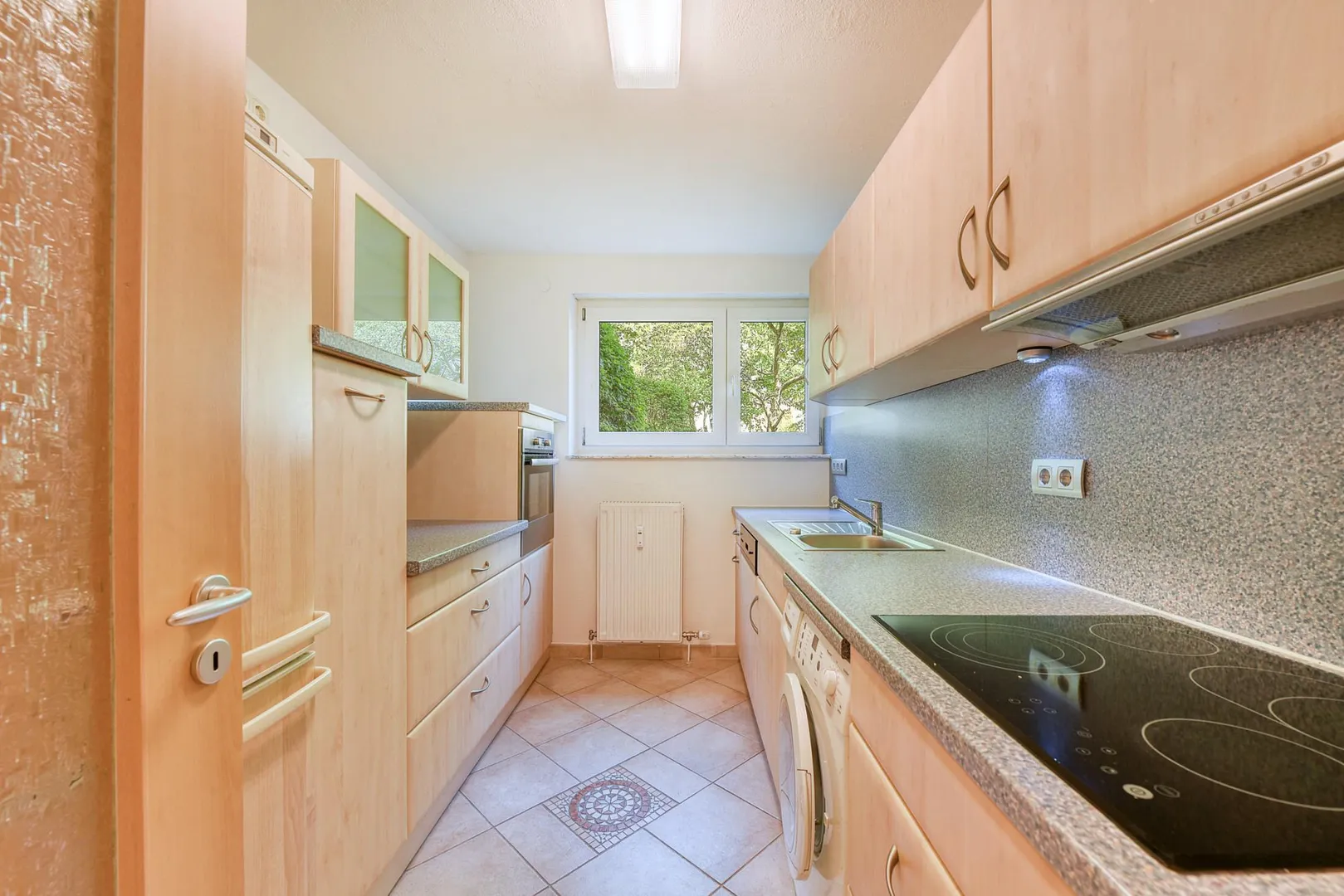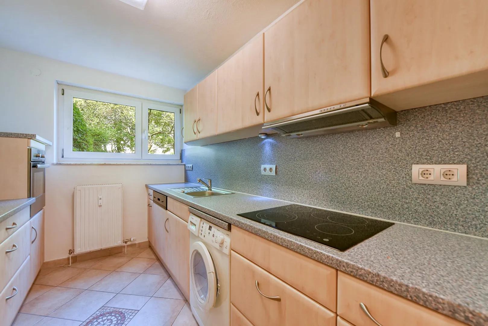 Die Küche ist mit einer Einbauküche mit Waschmaschinen-Anschluss sowie mit einer Waschmaschine ausgestattet.