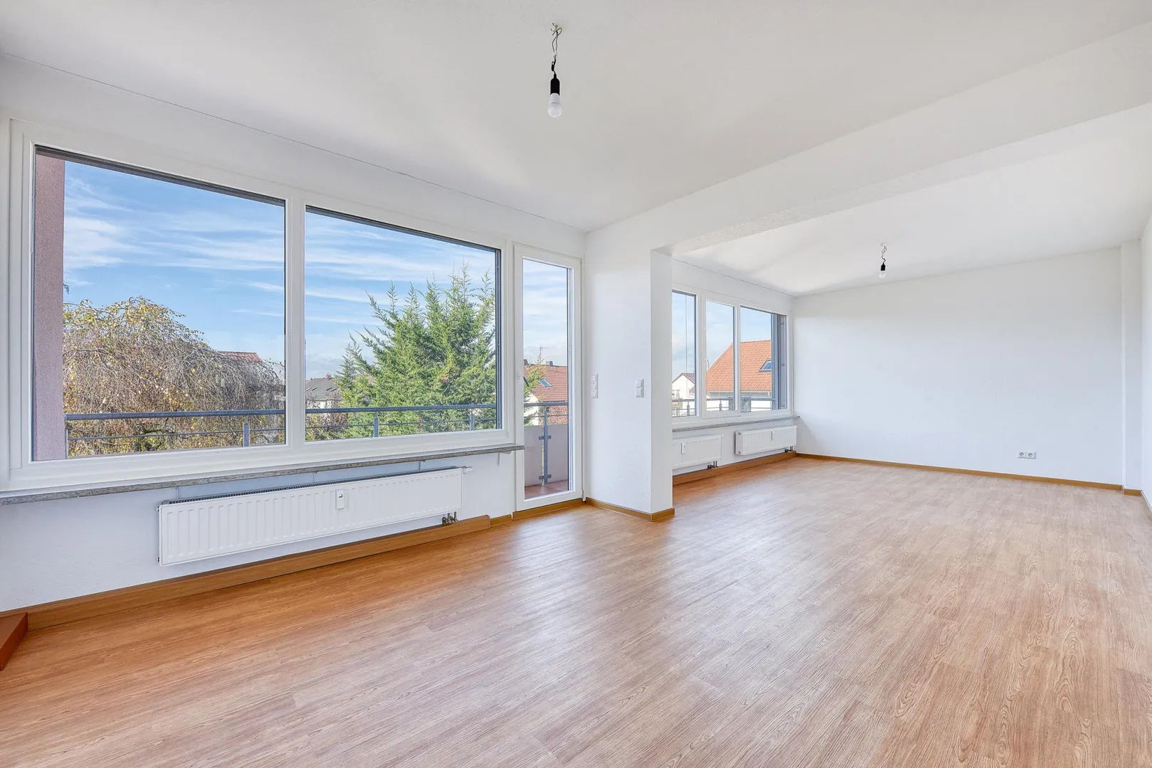 Die Zimmer, die offene Küche sowie der offene Eingangsbereich sind mit Vinyl-Designerböden ausgestattet.