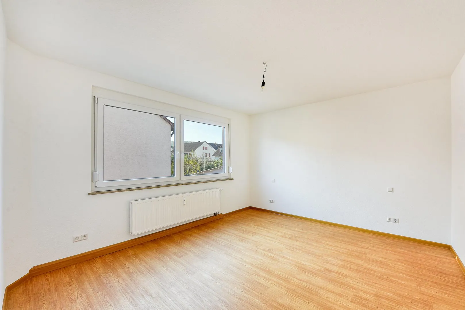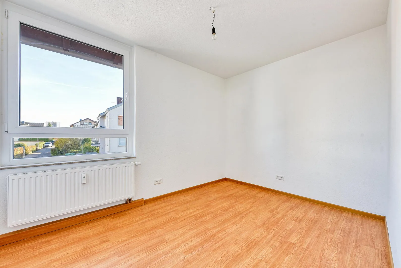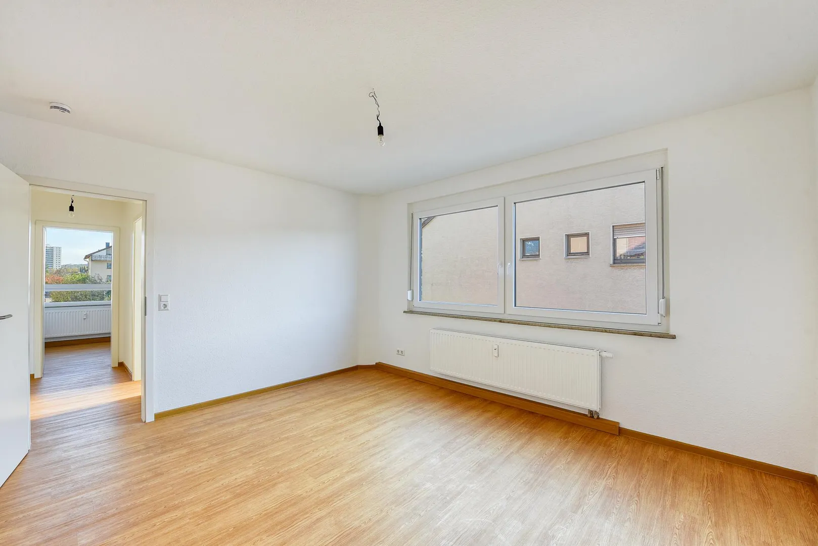 Die Wände sind mit Raufasertapeten tapeziert, weiß gestrichen und befinden sich in einem gepflegten Zustand.