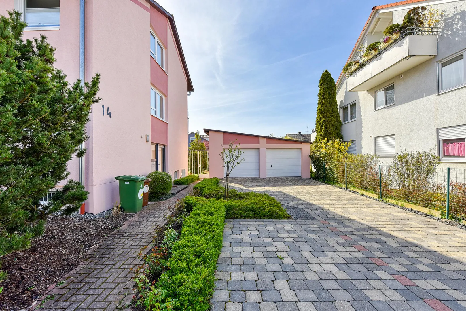 Zur Wohnung gehören ein Abstellraum im Untergeschoss mit ca. 5,4 m² sowie eine Garage vor dem Haus.