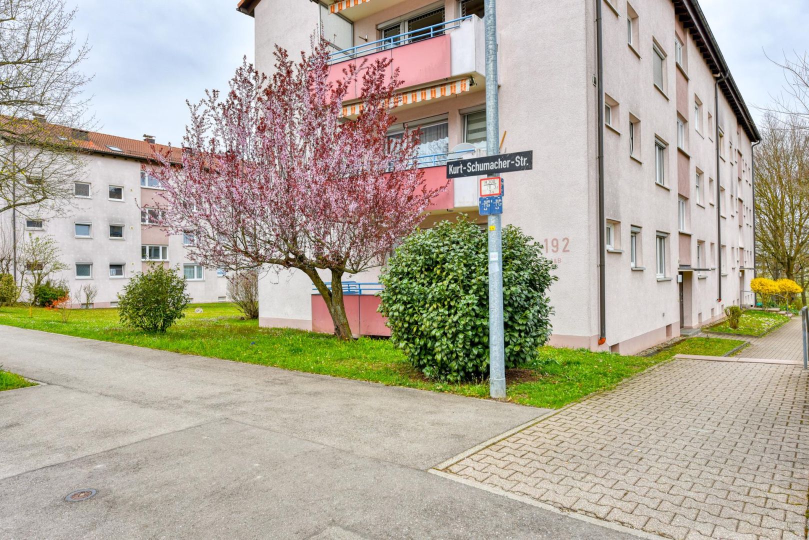 Die Bushaltestelle "Kurt-Schumacher-Straße" mit der Linie 72, der Bäcker "Sehne" sowie die Apotheke sind bequem zu Fuß erreichbar.