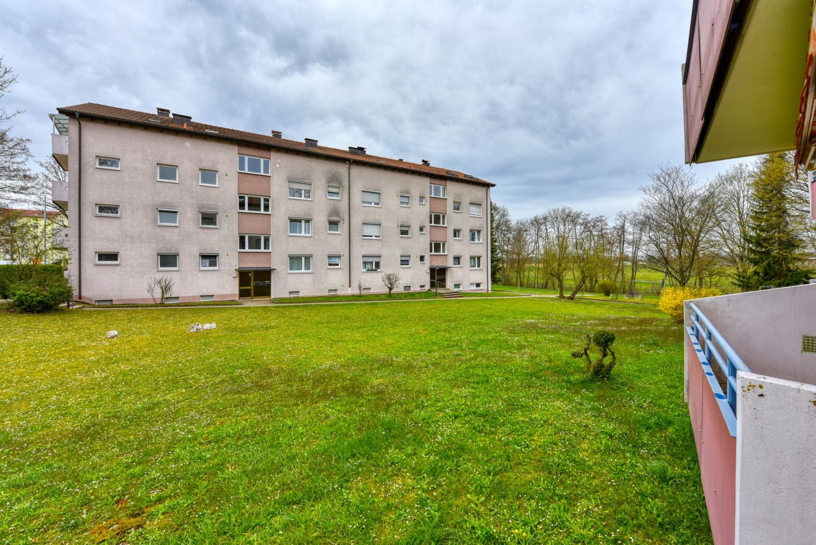 Das Haus befindet sich am Feldrand. Die Wohnung befindet sich Richtung Straße.