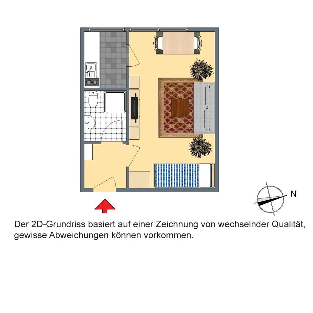Bitte beachten Sie, dass die Wohnung auf den Bildern größer wirkt als sie eigentlich ist. Die Bilder sollen Ihnen zur Orientierung dienen. Grundrisse und Flächen sind dem Exposé anbei.