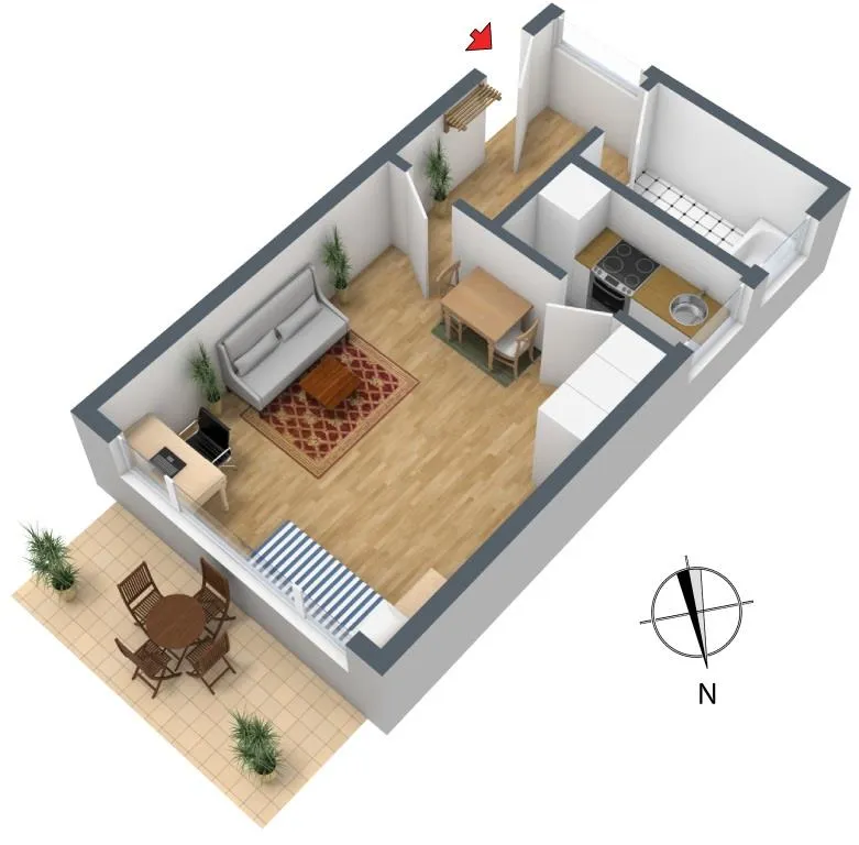 Diese gemütliche 1-Zimmer-Wohnung befindet sich im 1. Obergeschoss.