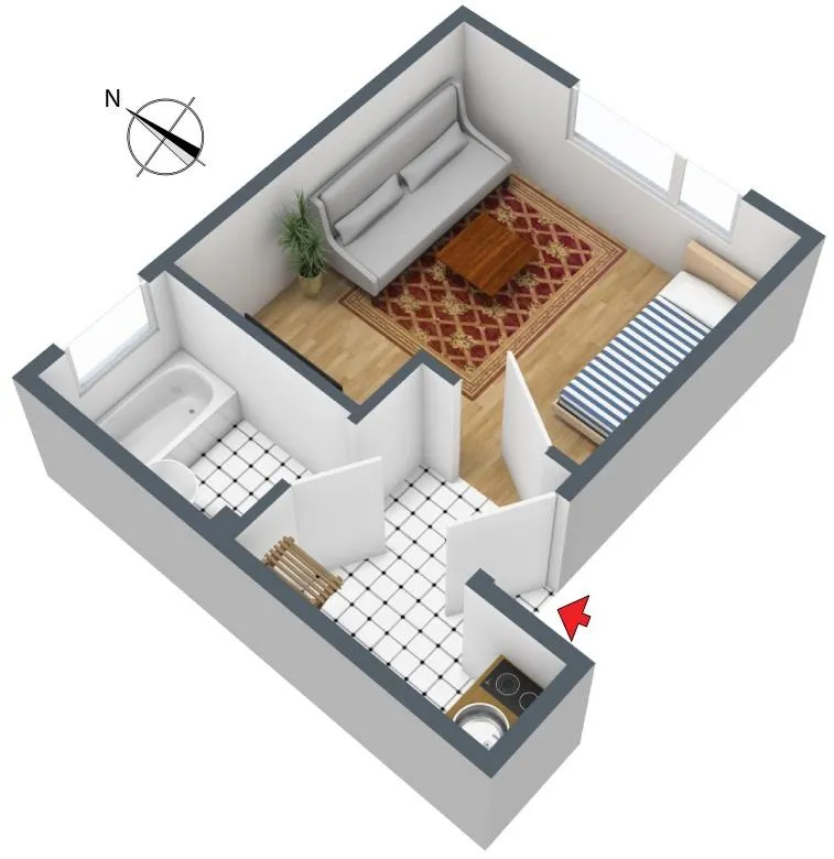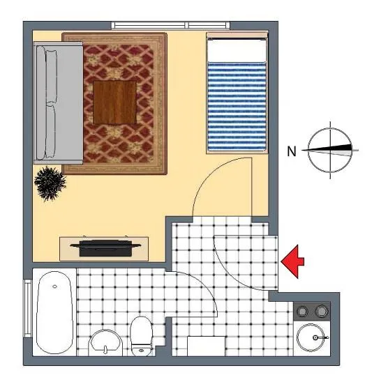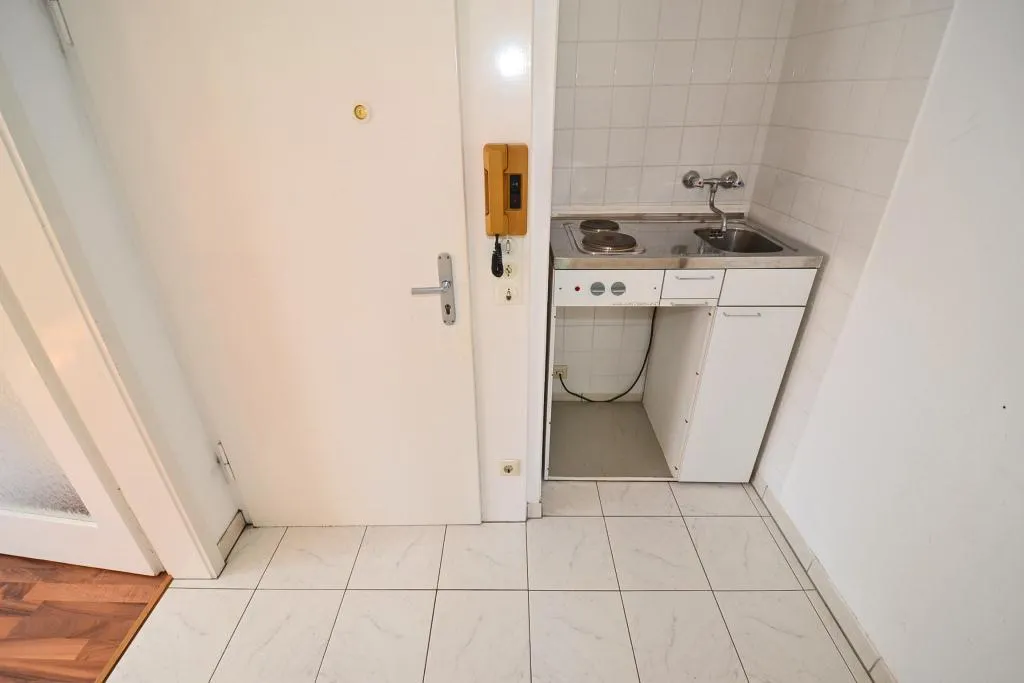 Diese gemütliche 1-Zimmer-Wohnung befindet sich im Hochparterre (Erdgeschoss).