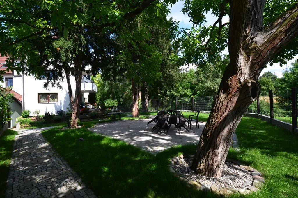 Das Haus grenzt direkt an eine Parkanlage mit dem Feuerbach.