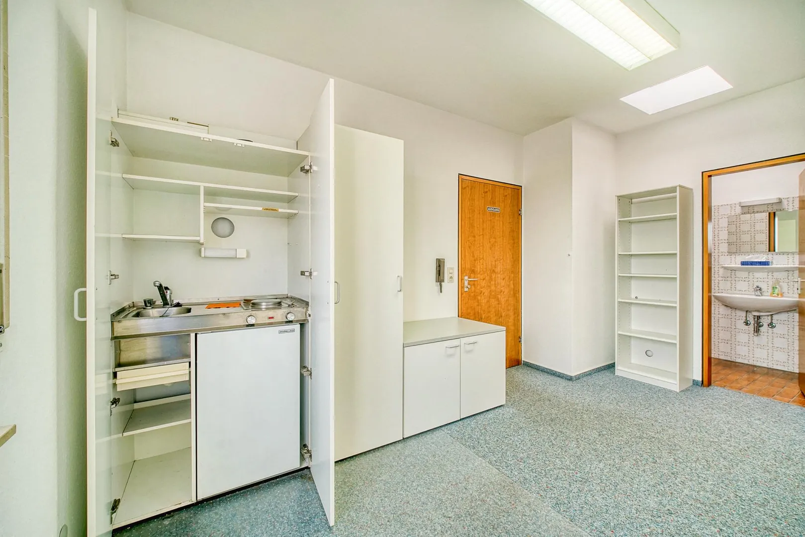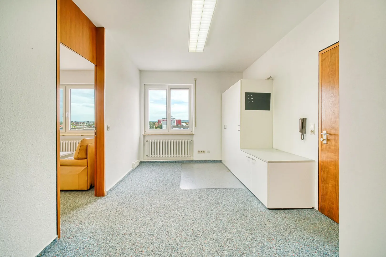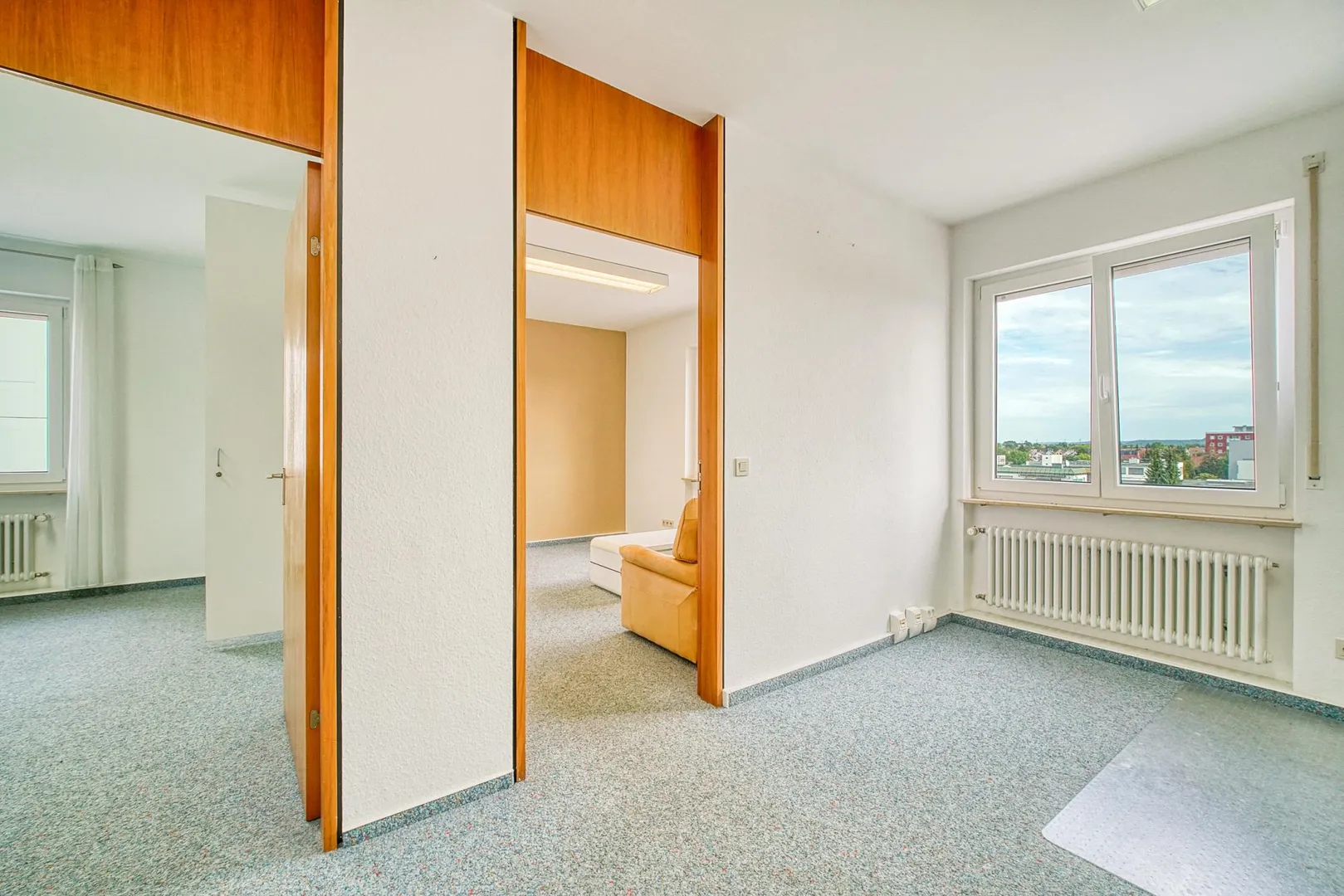 In den anderen Räumen ist Teppichboden verlegt.