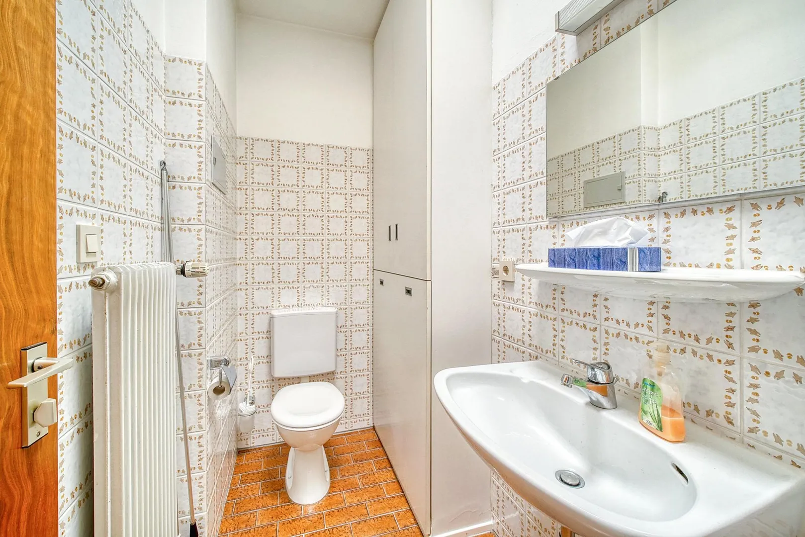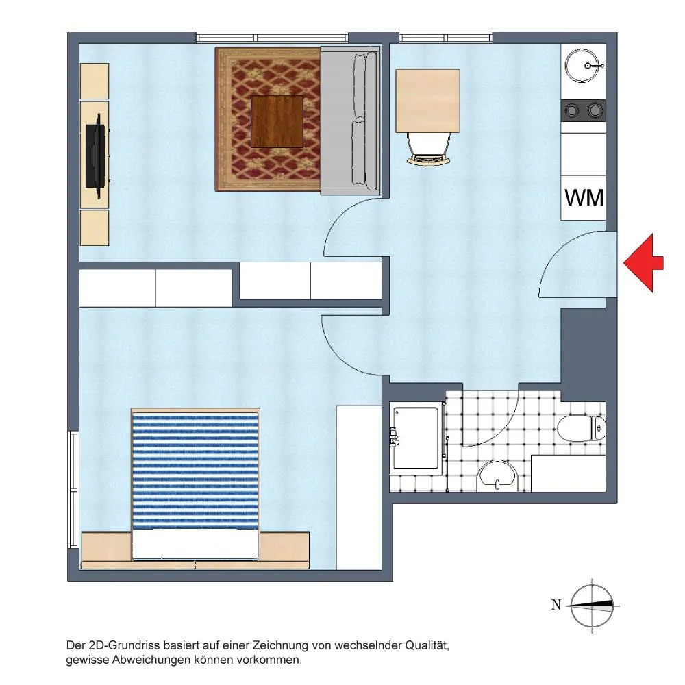 Die Wände sind mit Raufasertapeten tapeziert und befinden sich in einem gepflegten Zustand. Die Raumhöhe beträgt ca. 2,64 Meter.
