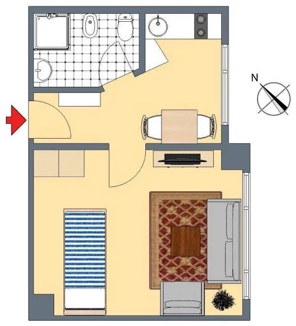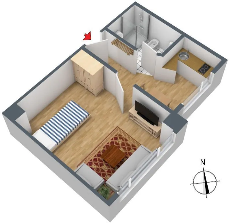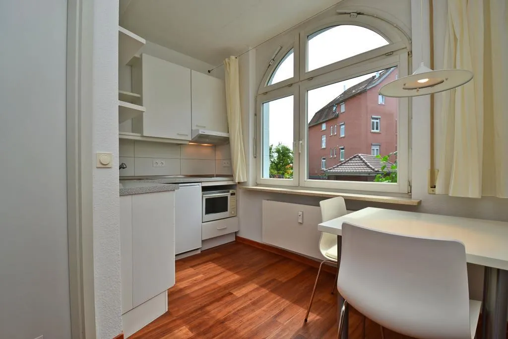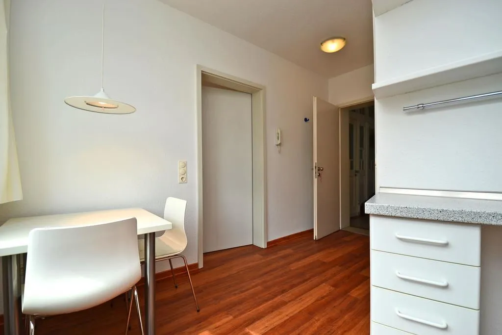 Diese teilmöblierte und frisch renovierte 1 1/2-Zimmer-Wohnung befindet sich im Hochparterre (Erdgeschoss).