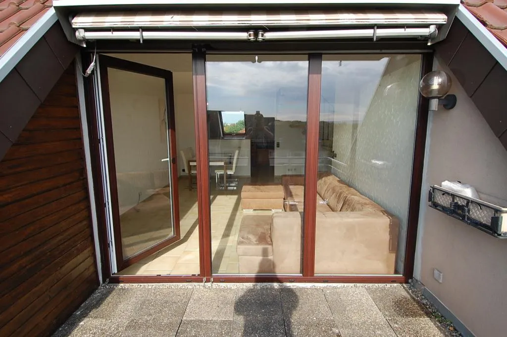 Die ca. 7 m² große Terrasse ist nach Süd-West ausgerichtet. Sie verfügt über eine Markise und einen Abstellraum.