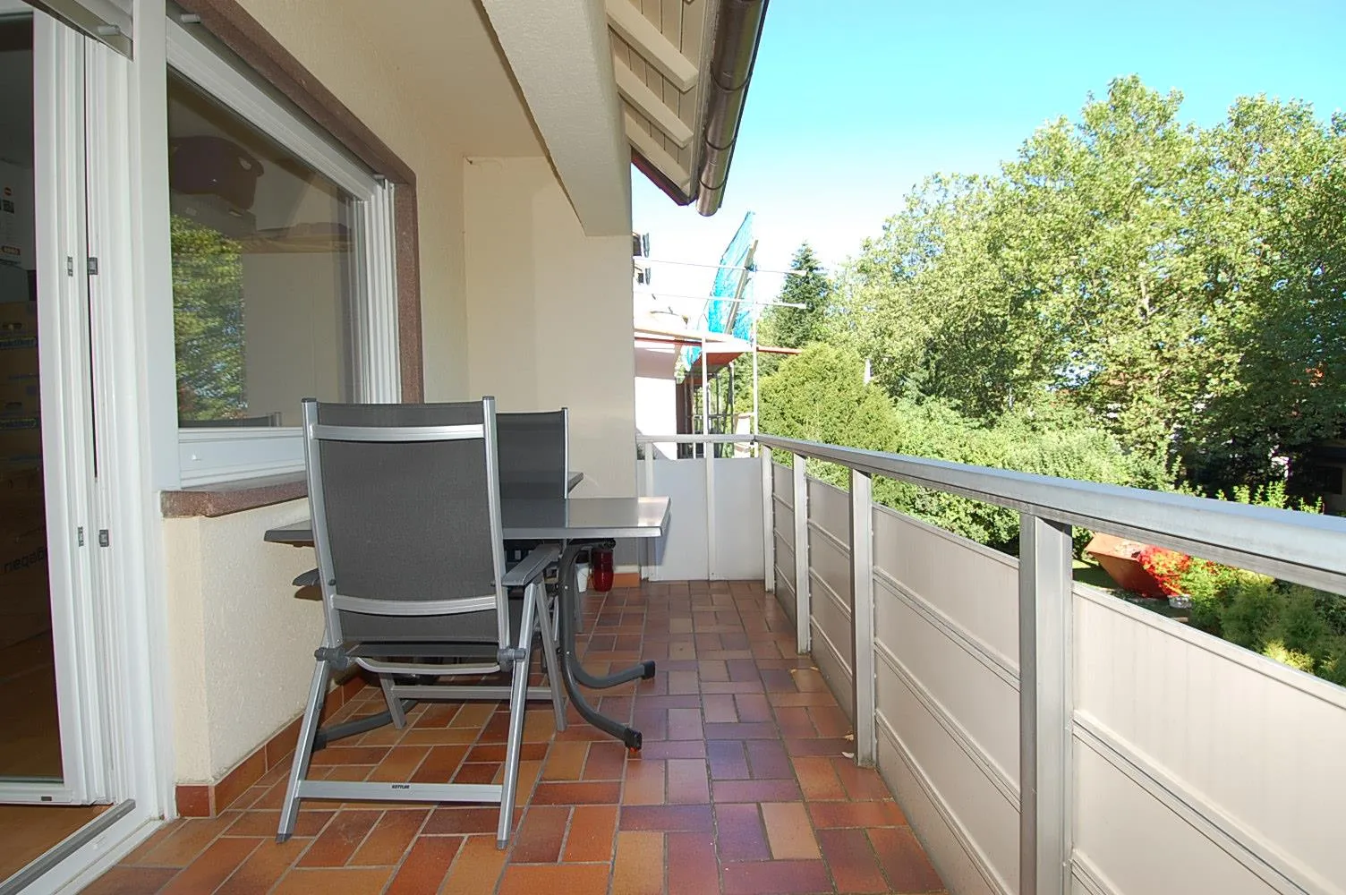 Das Arbeitszimmer und der überdachte, ca. 9 m² große Balkon sind nach Süden ausgerichtet. Das Wohnzimmer ist nach Süden und Westen ausgerichtet. Das Schlafzimmer ist nach Westen und Norden ausgerichtet.