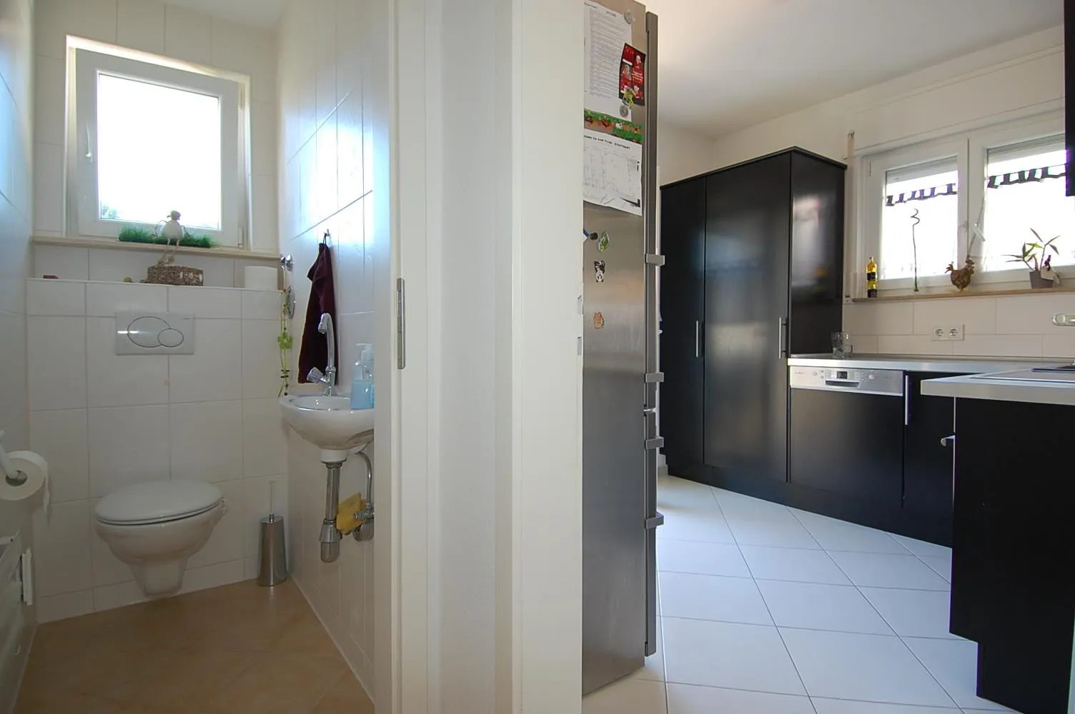 Die Zimmer und der Flur sind mit Laminatböden ausgestattet. Die Böden im Bad, in der Küche und im separaten WC sind gefliest.