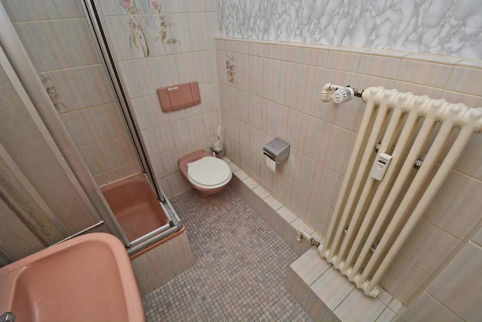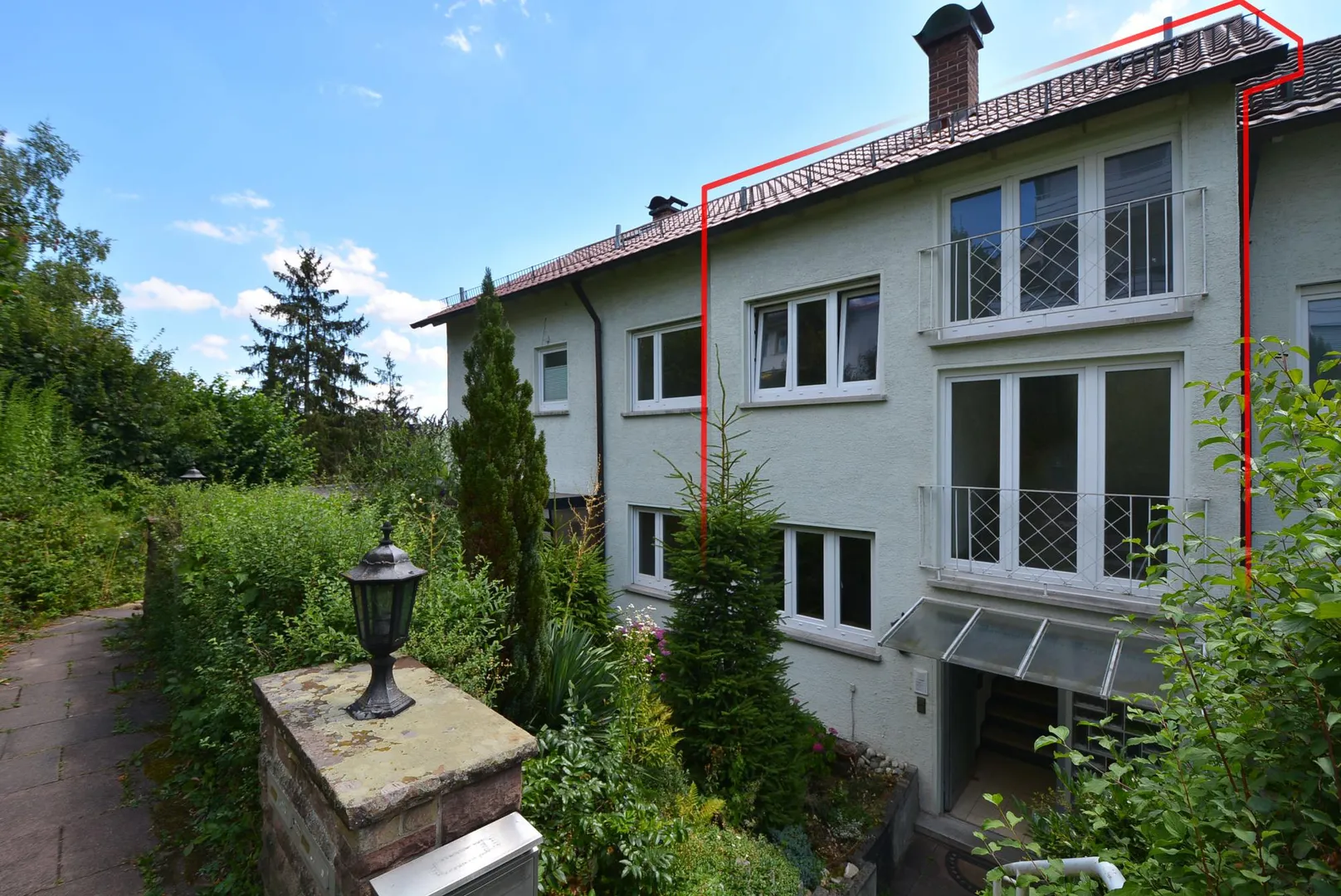 Dieses Reihenmittelhaus wurde ca. 1960 auf einem ca. 173 m² großem Hang-Grundstück erstellt. Hinzu kommen ein Zugangsweg zum Haus mit ca. 22 m² sowie eine Einzel-Garage mit ca. 32 m² Grundstücksanteil. Die Gesamtfläche der 3 Grundstücke beträgt ca. 227 m².