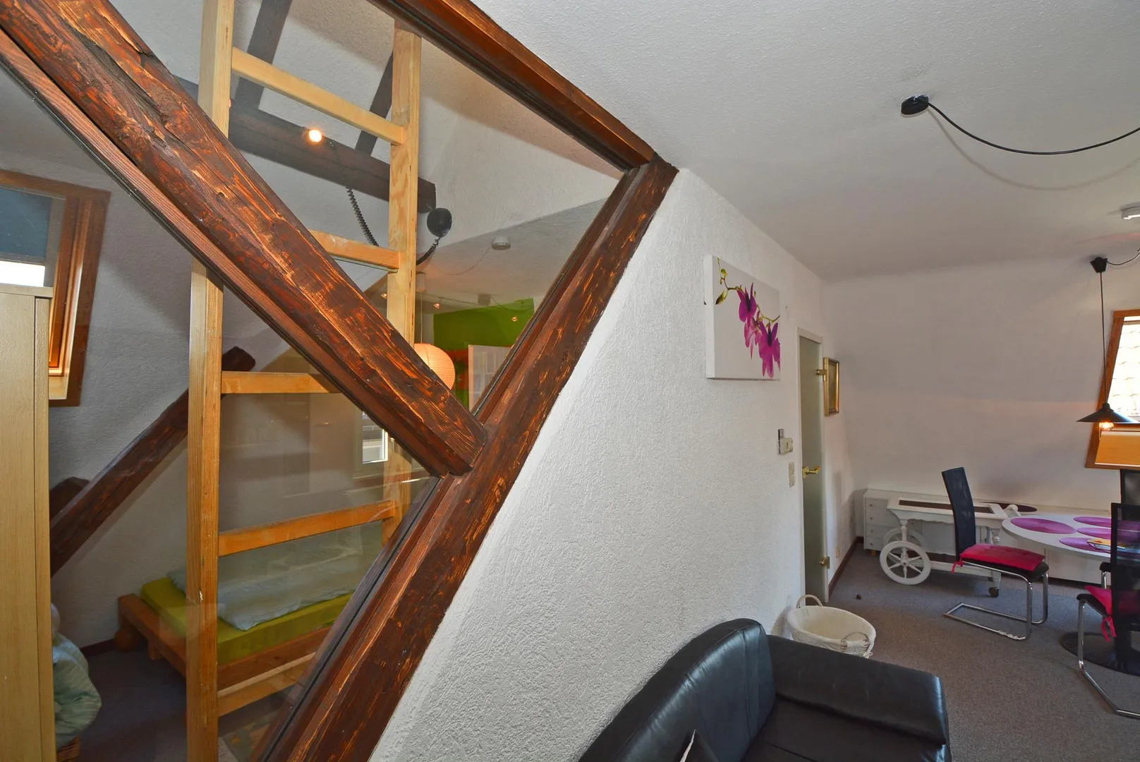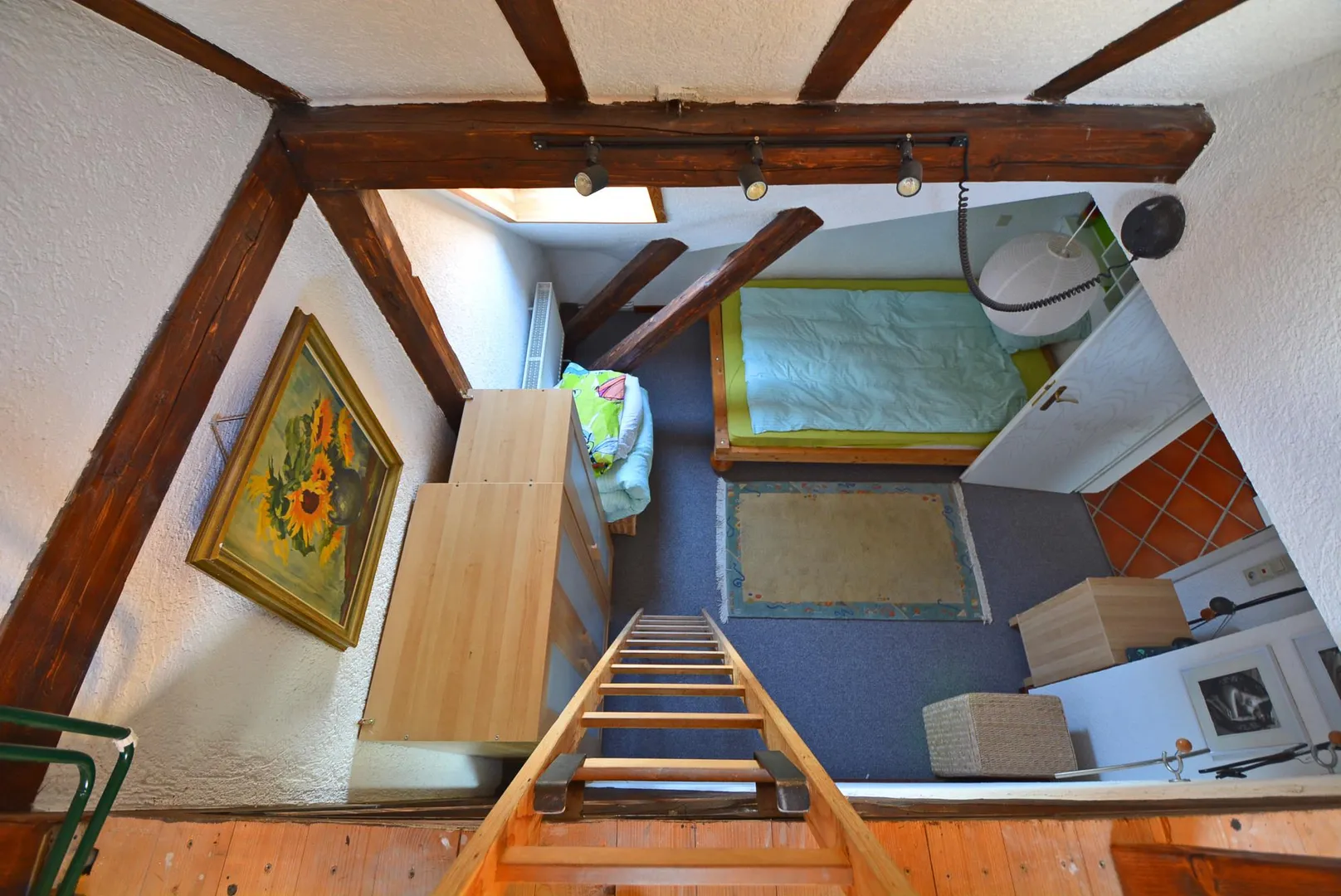 Zur Wohnung gehört als Abstellbereich eine Bühne, welche über eine Leiter innerhalb der Wohnung begehbar ist.