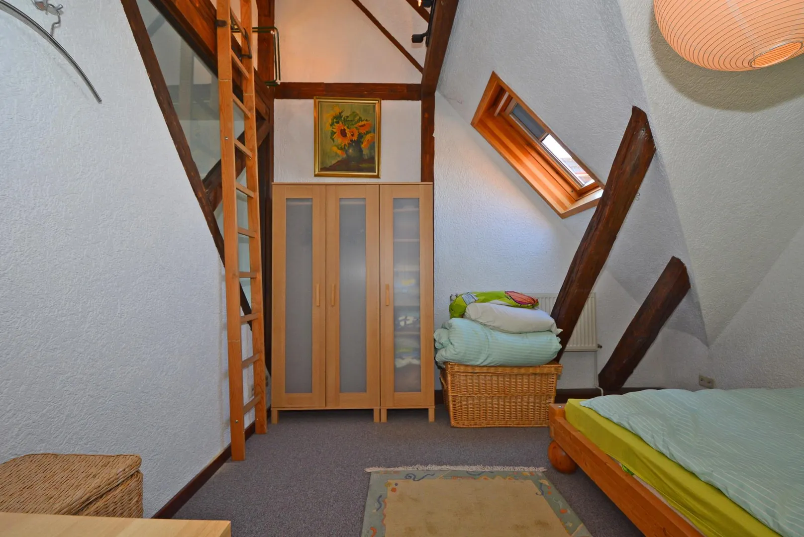 Zur Wohnung gehört als Abstellbereich eine Bühne, welche über eine Leiter innerhalb der Wohnung begehbar ist.