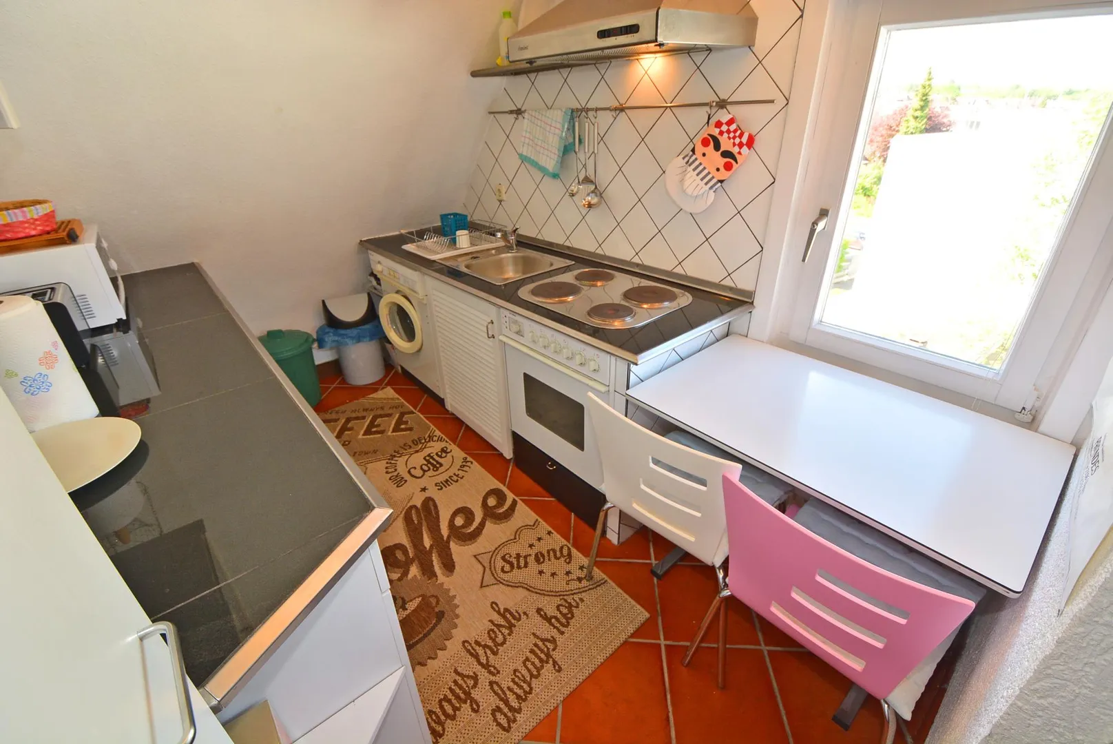 Diese bequeme und möblierte 2-Zimmer-Dachgeschoss-Etagen-Wohnung befindet sich im 3. Obergeschoss.